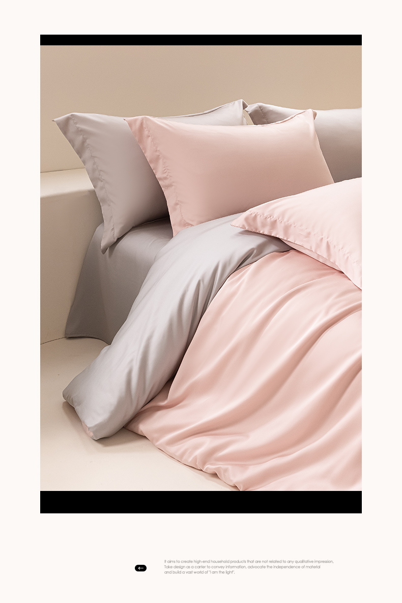 当前位置: 91家纺网 > 商品网购 > 床品套件 > 四件套 > 其它四件套 > 涵宸家纺 2026新款纯色天丝棉四件套-场景二 玫瑰粉+时尚灰