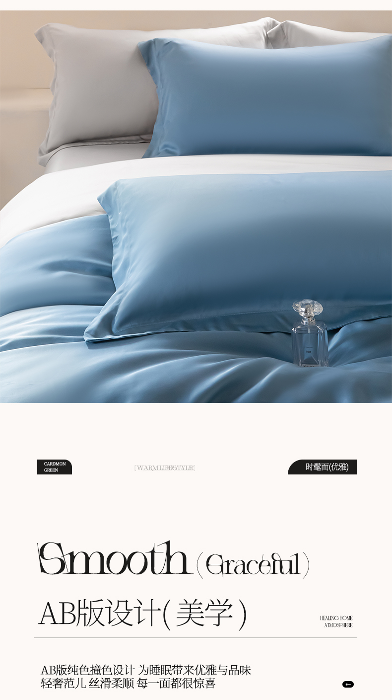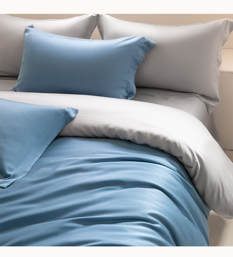 当前位置: 91家纺网 > 商品网购 > 床上用品 > 床单 > 涵宸家纺 2026新款纯色天丝棉四件套-场景二 星耀兰+时尚灰