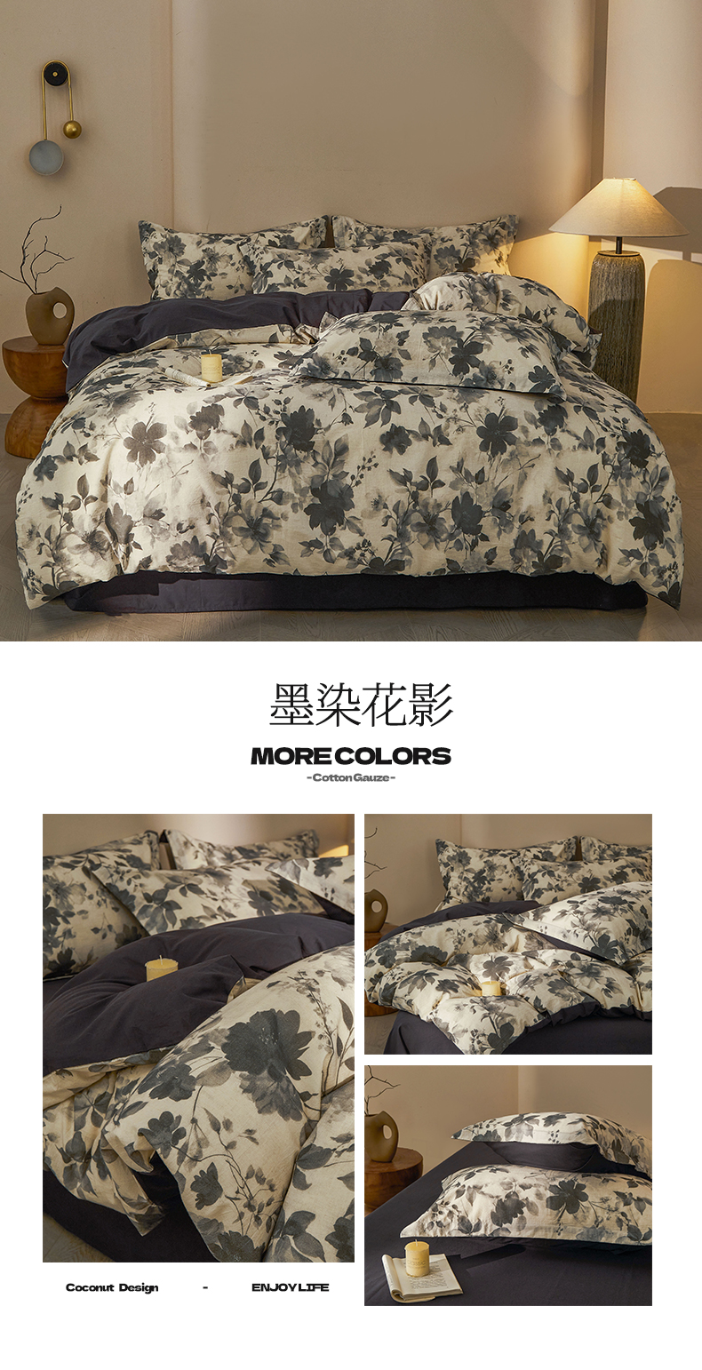 涵宸家纺 2026新款棉麻数码印花四件套 丹青烟柳