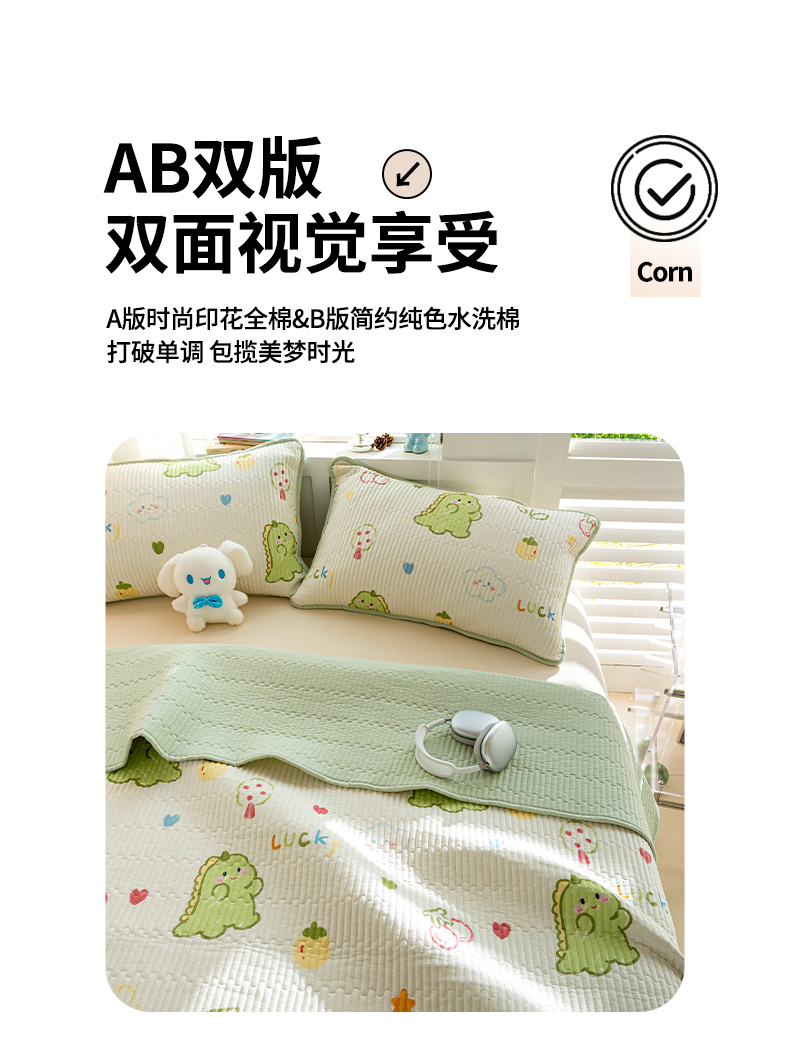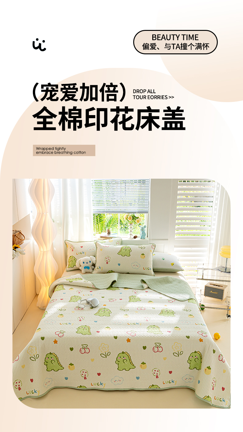 • 91家纺网 家纺一手货源 找家纺 X猫先生 2026新款全棉床盖小清新夹棉床单炕盖四季跑量款 幸运独角龙