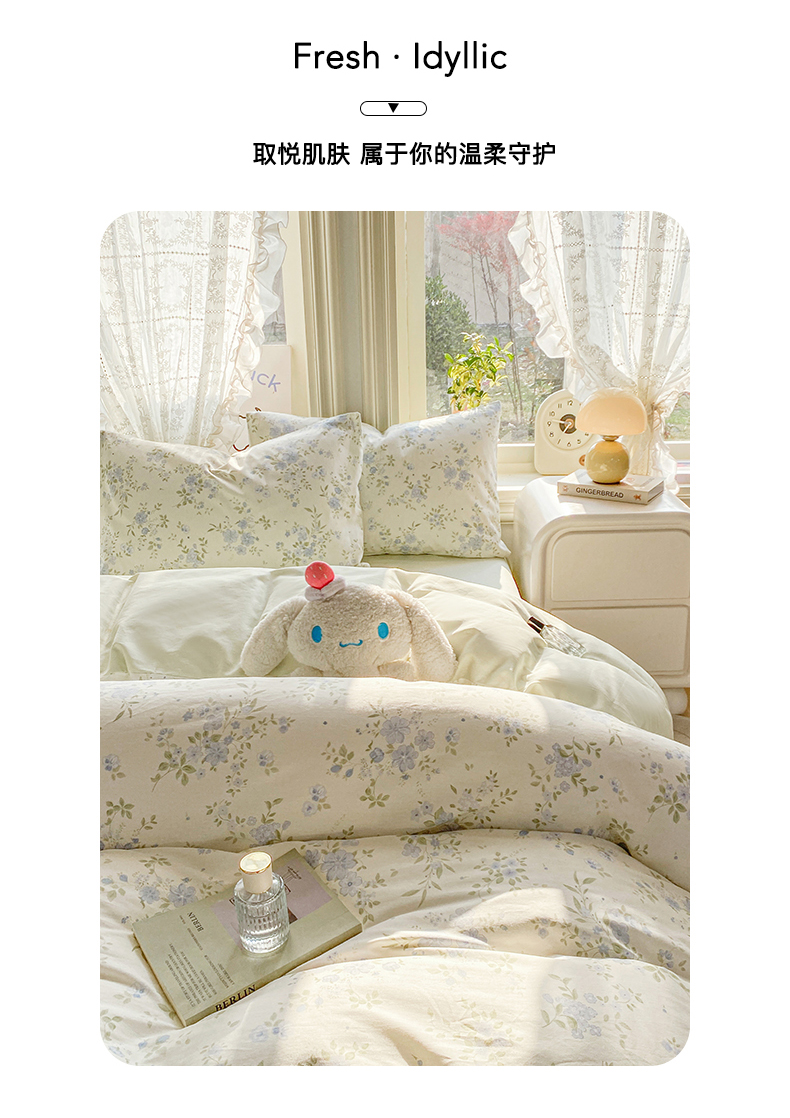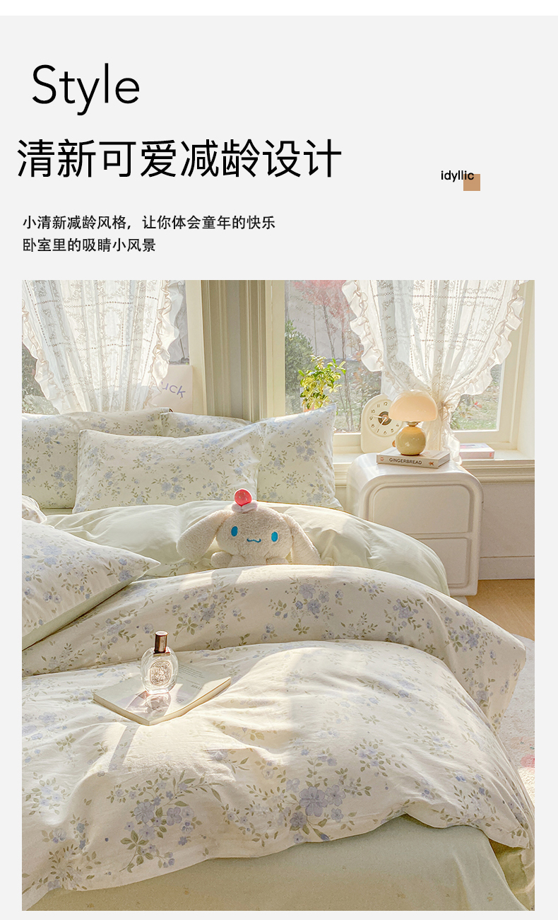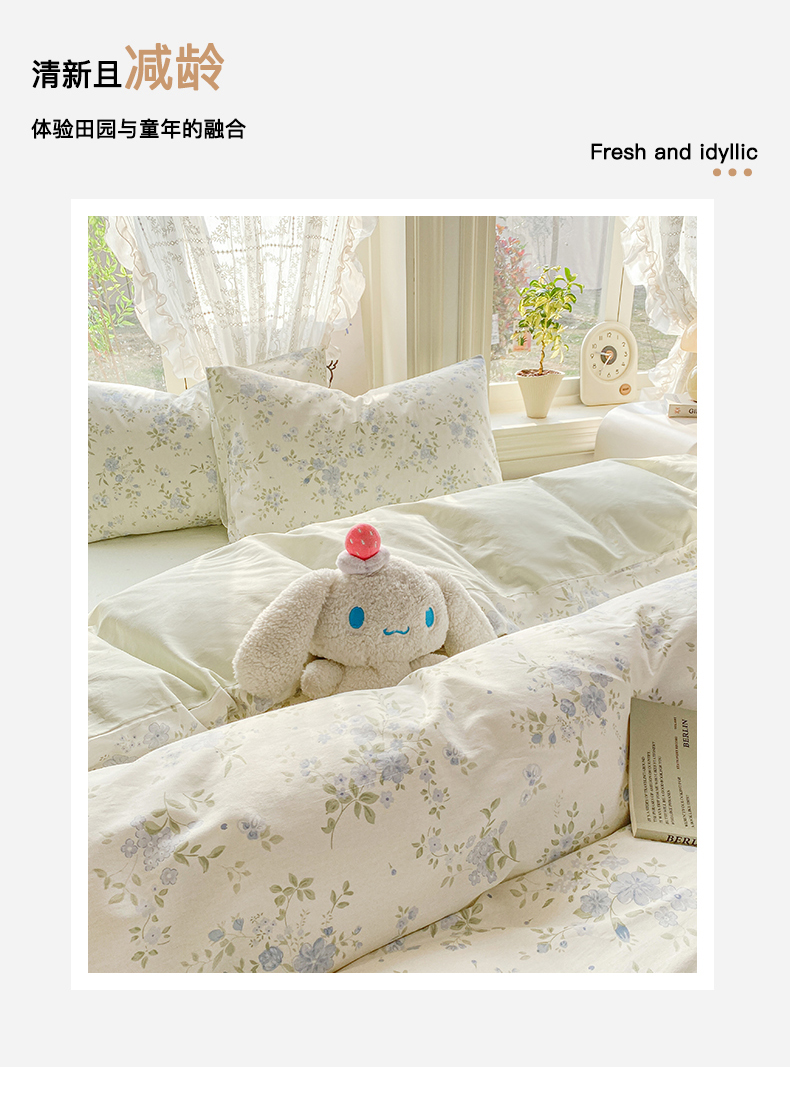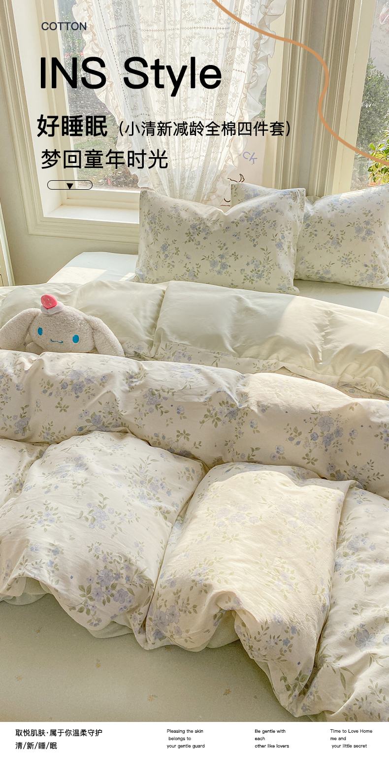 当前位置: 91家纺网 > 商品网购 > 床品套件 > 四件套 > 全棉普通四件套 > 黑马家居 2026新款13070全棉印花小清新卡通花卉四件套系列 汀兰点素