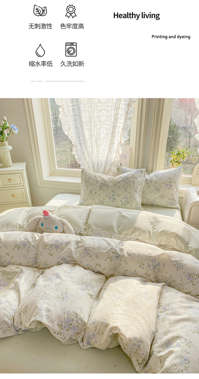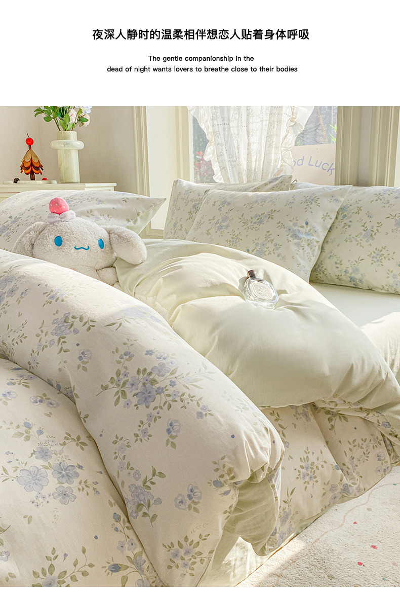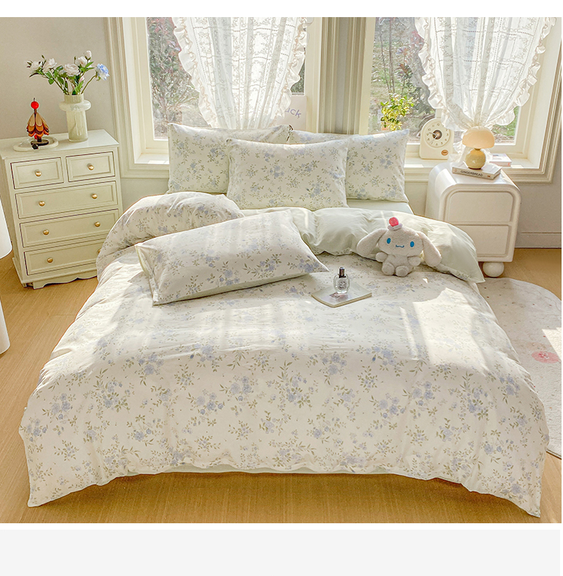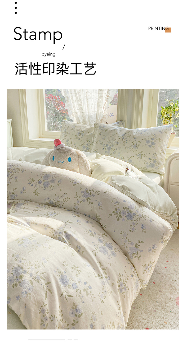 当前位置: 91家纺网 > 商品网购 > 床品套件 > 四件套 > 全棉普通四件套 > 黑马家居 2026新款13070全棉印花小清新卡通花卉四件套系列 汀兰点素