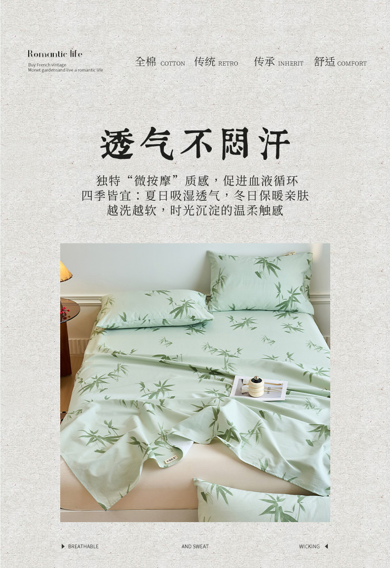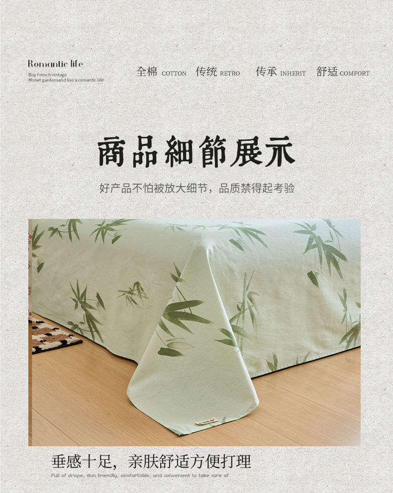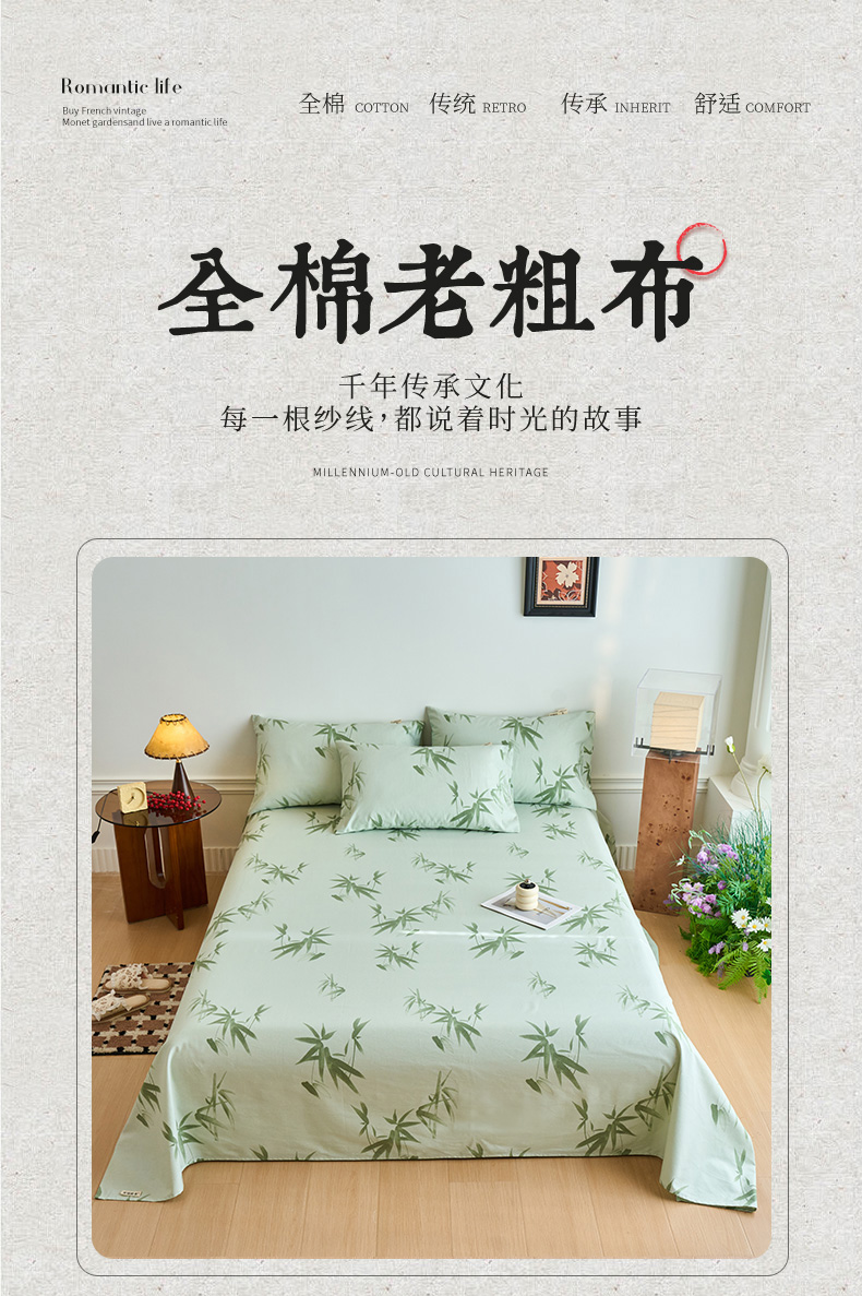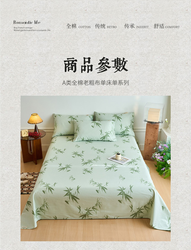 春皖家纺 2026春夏新品简约款老粗布系列床单单品床单床单单件 竹影(无印款)