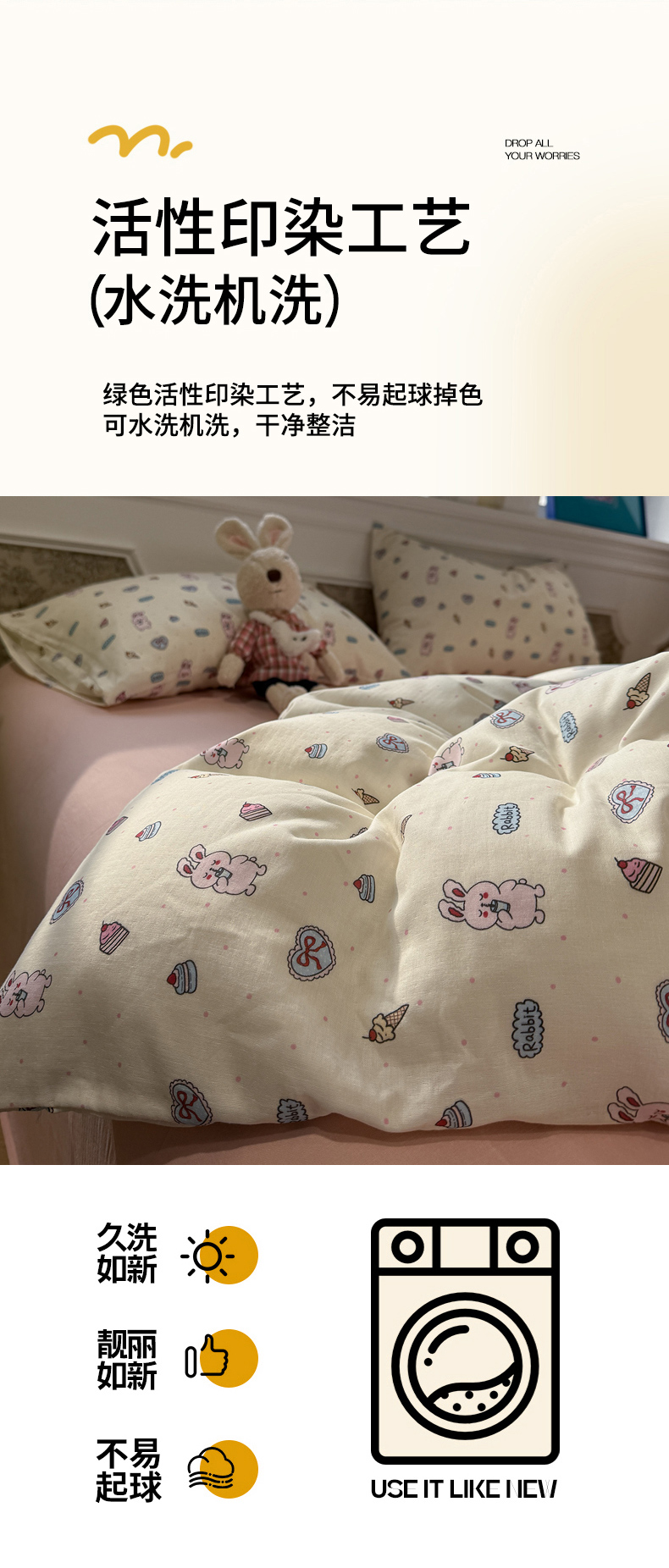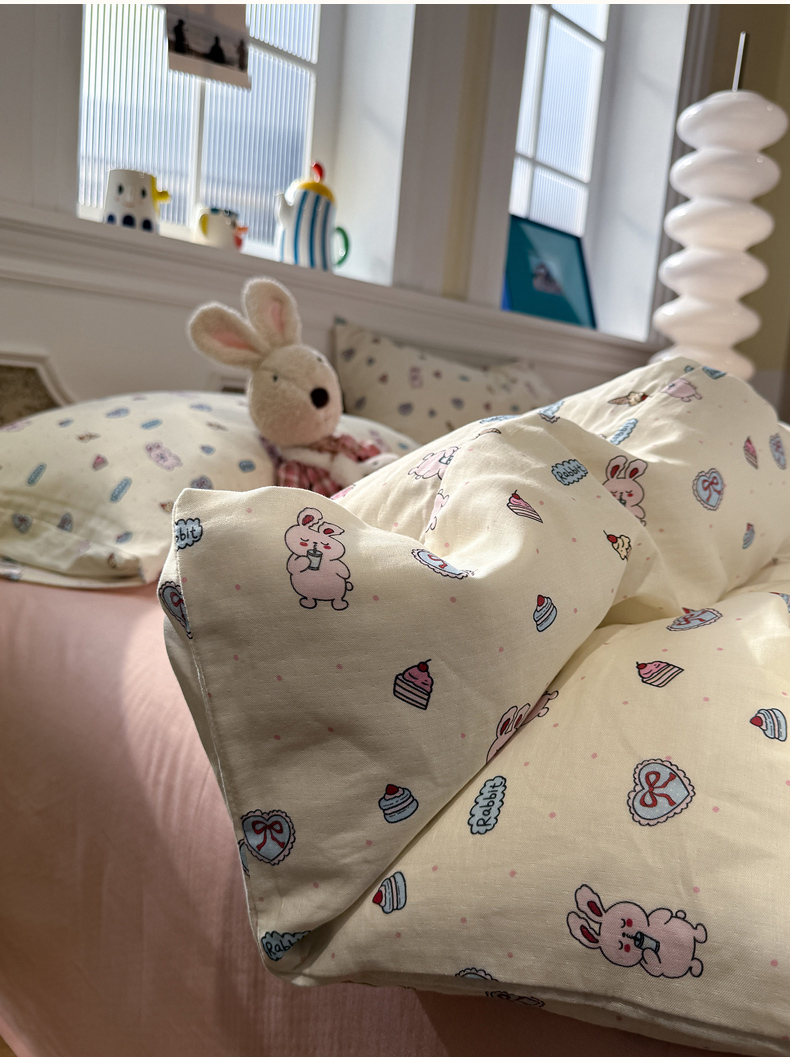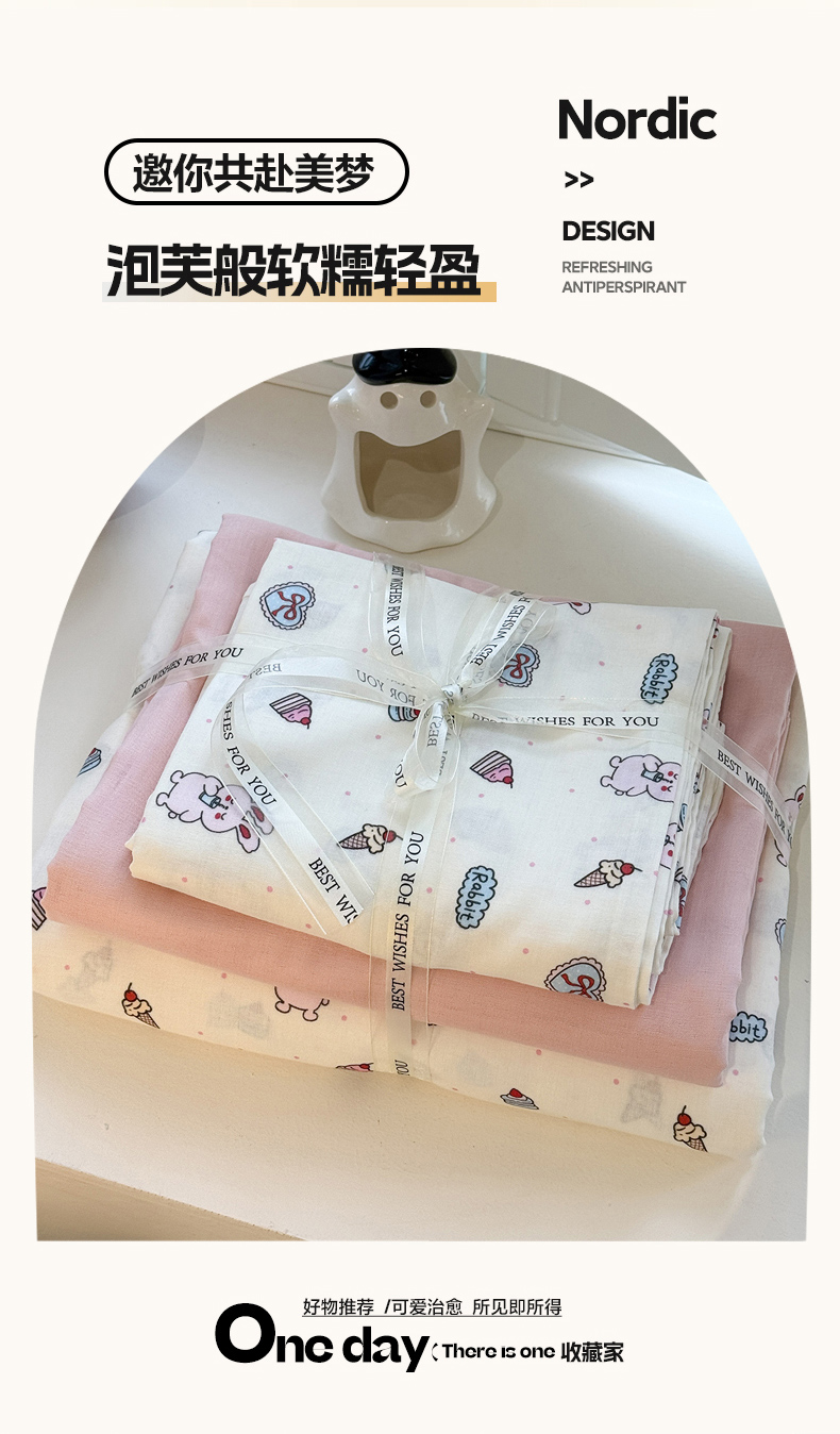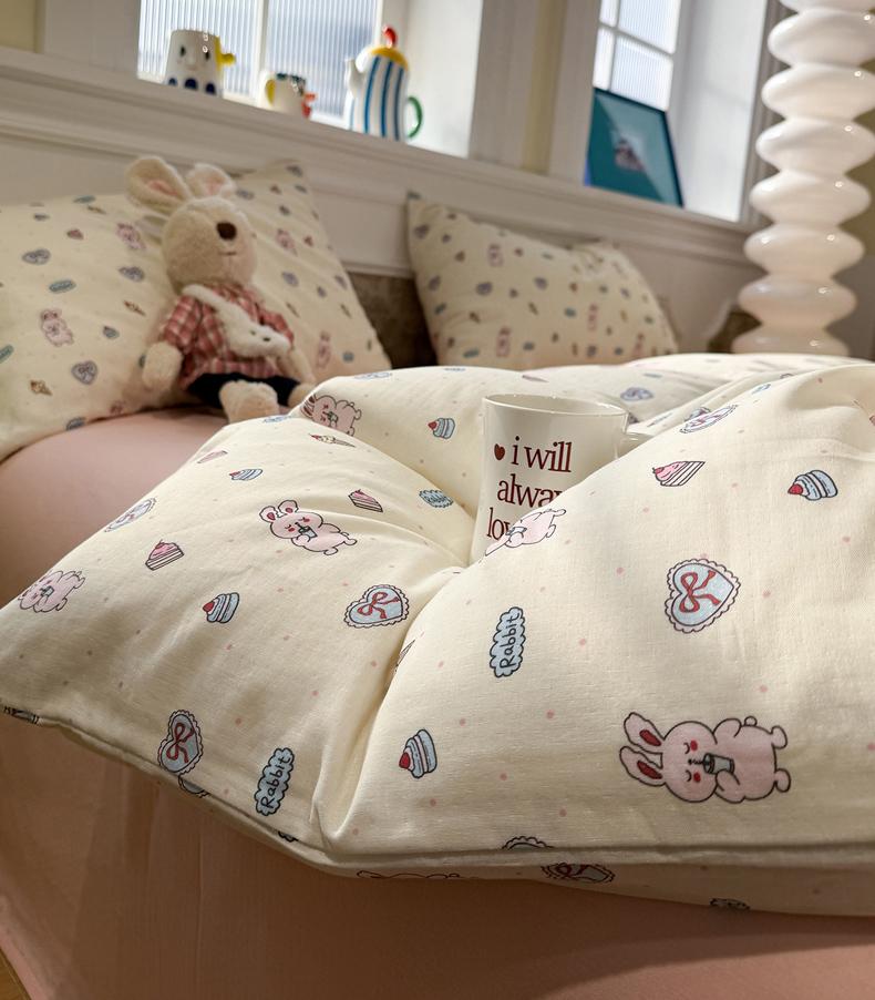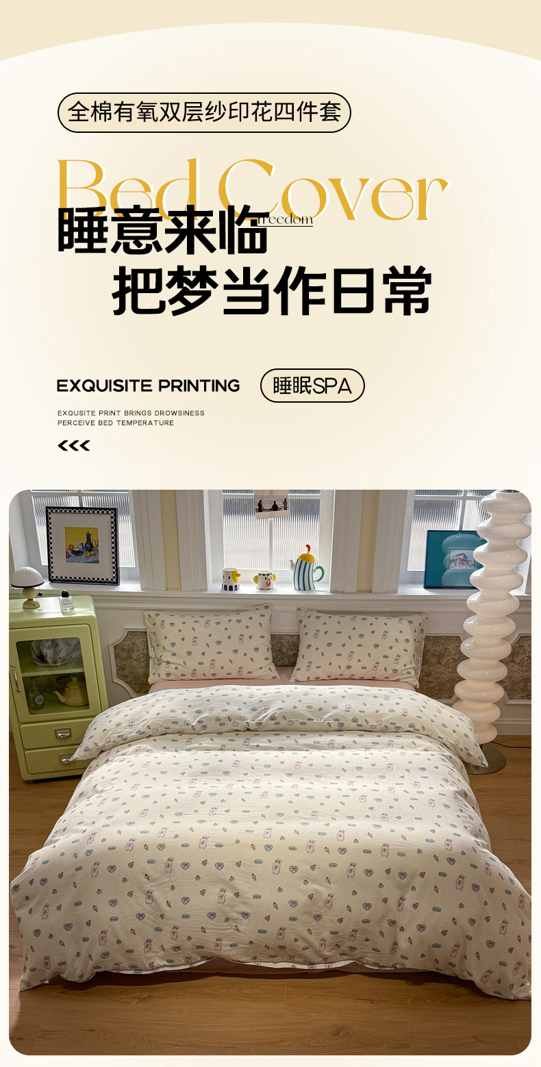 当前位置: 91家纺网 > 商品网购 > 床品套件 > 四件套 > 双层纱四件套 > 塞纳 2026新款.全棉有氧双层纱四件套-场景二 奶油星崽