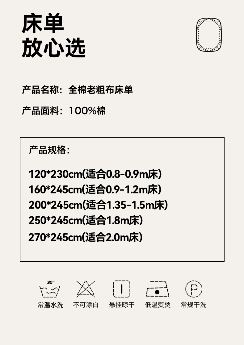 商品名称:(总)名兮家居 2026新款全棉A类卡通简约时尚老粗布床单