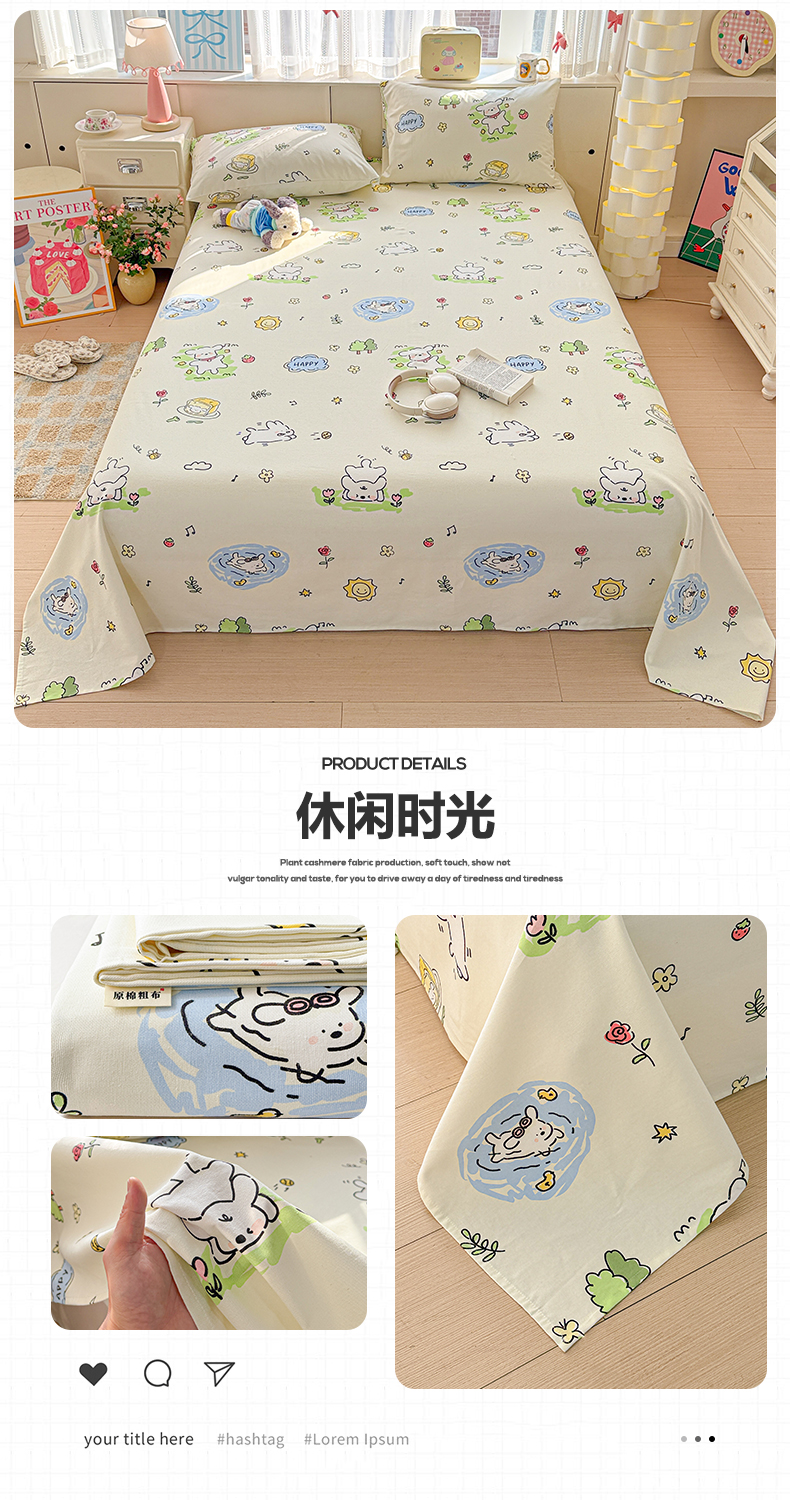 (总)名兮家居 2026新款全棉A类卡通简约时尚老粗布床单