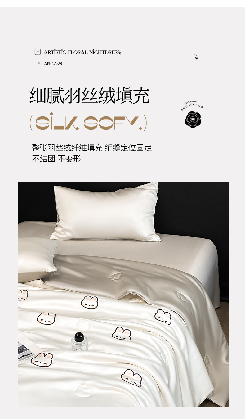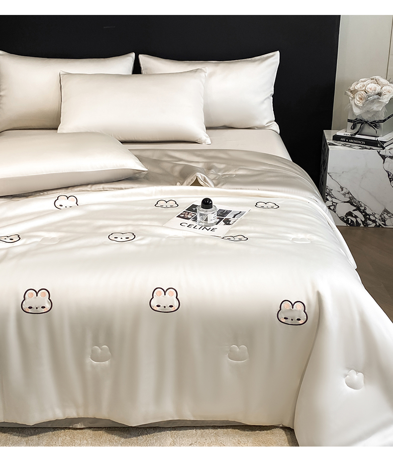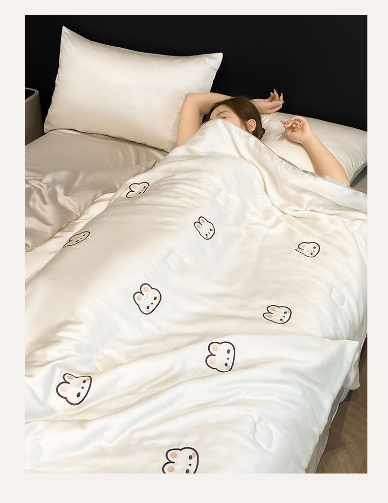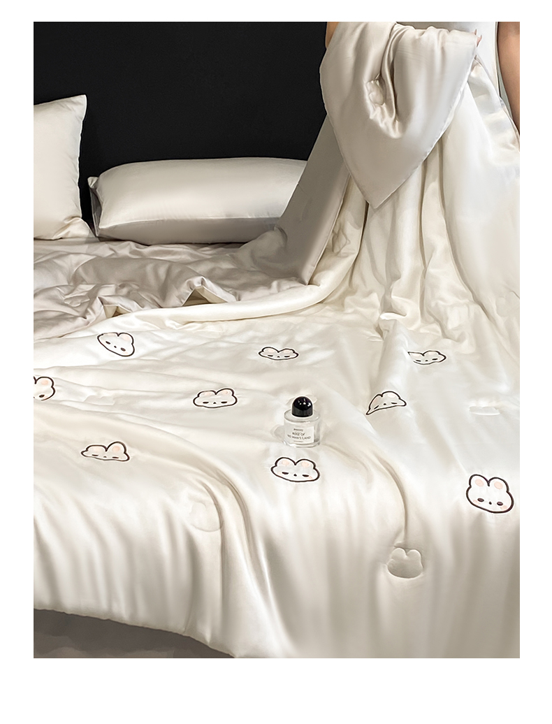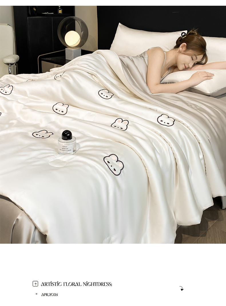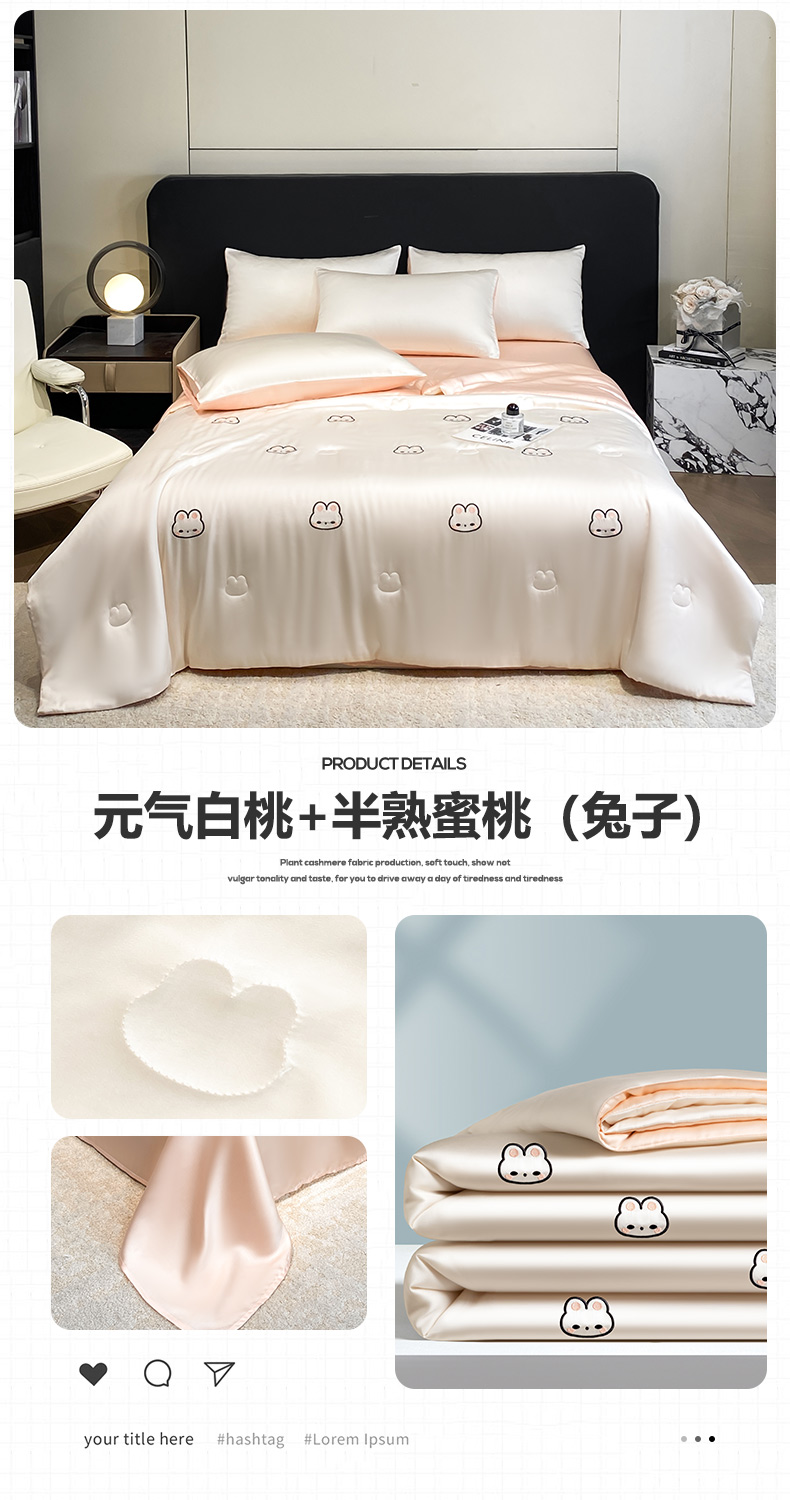 • 91家纺网 家纺一手货源 找家纺 无界 2026新款水洗真丝夏被-散点-贝尔 贝尔 元气白桃+冰川灰(兔子)