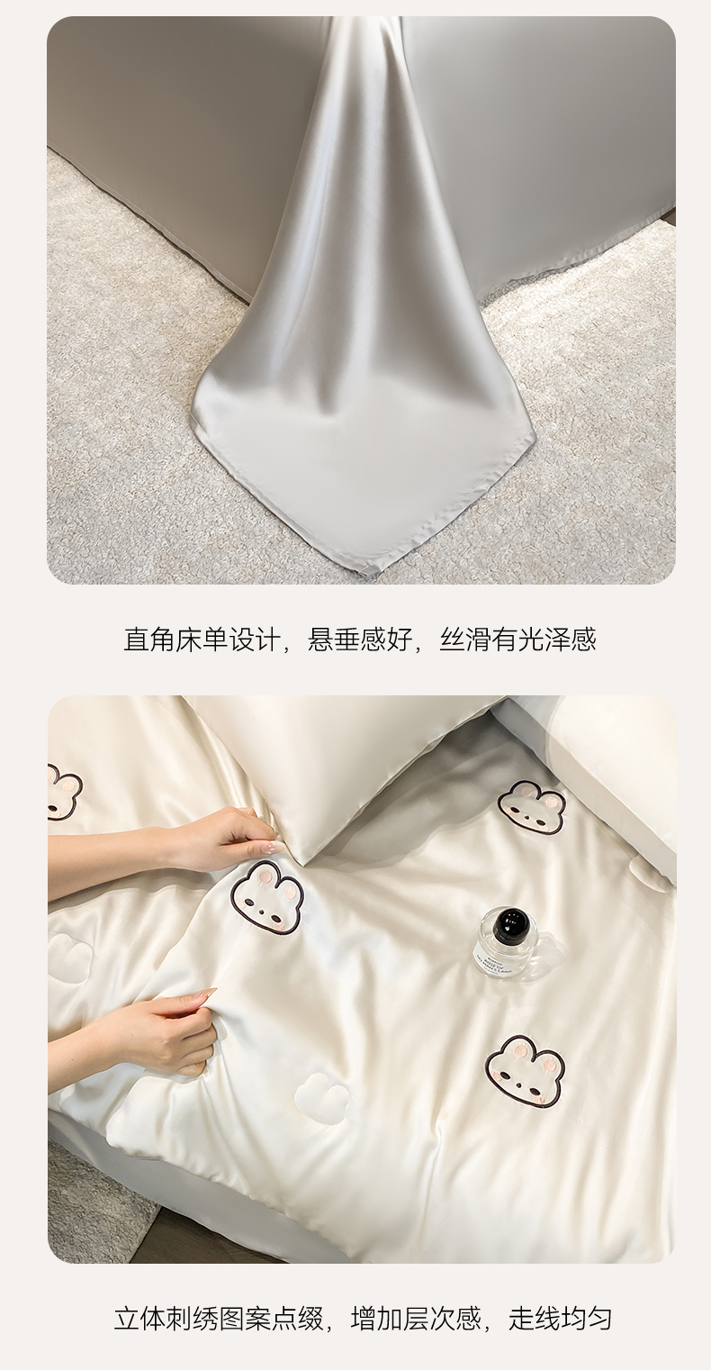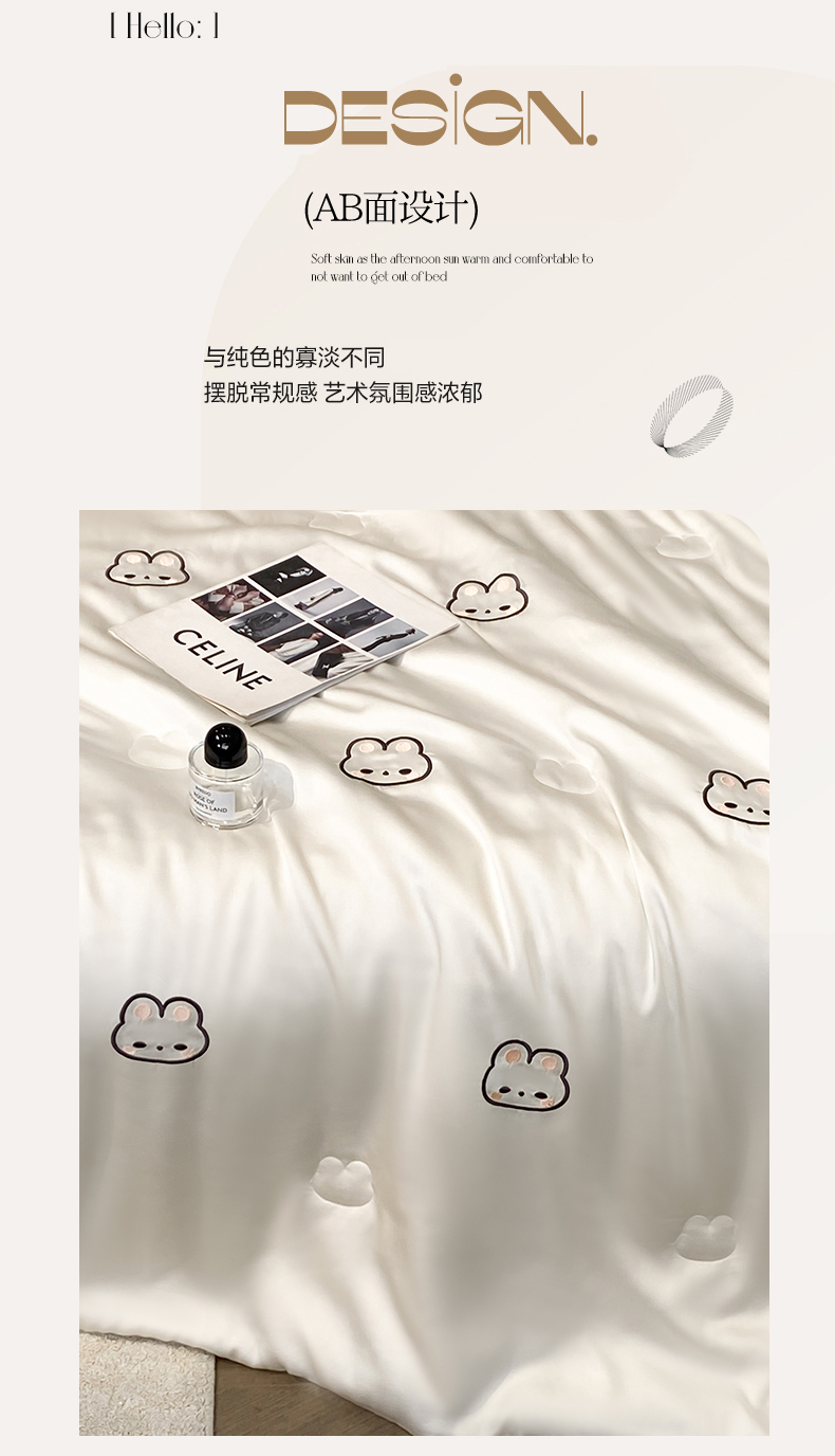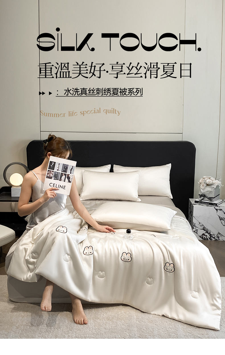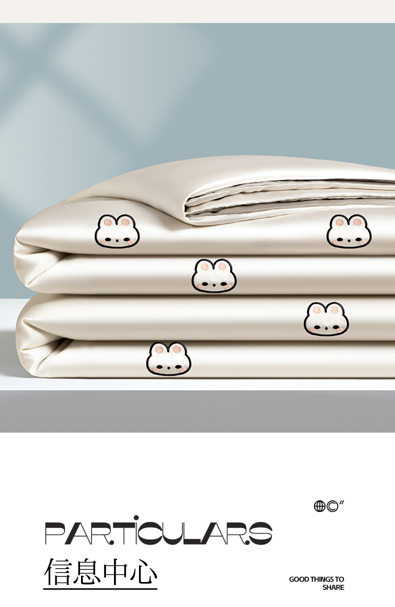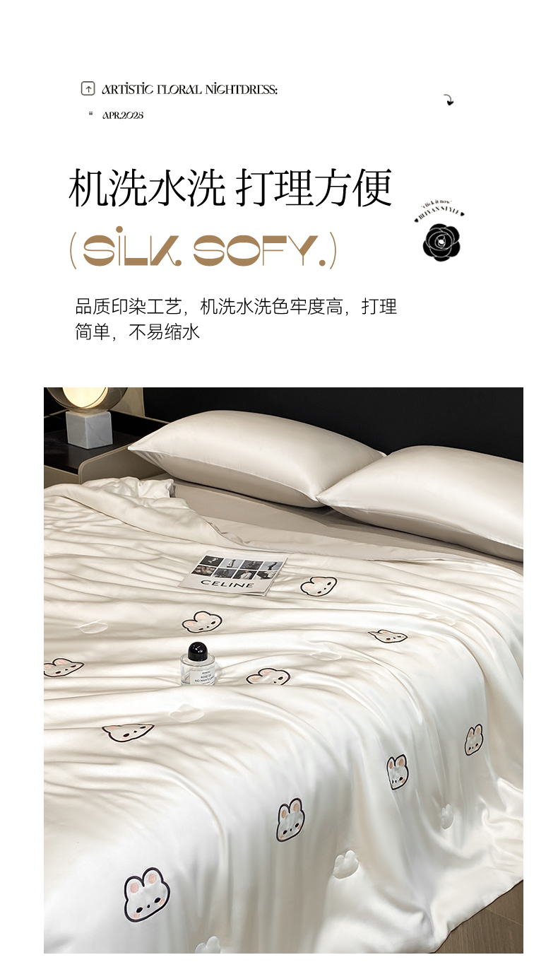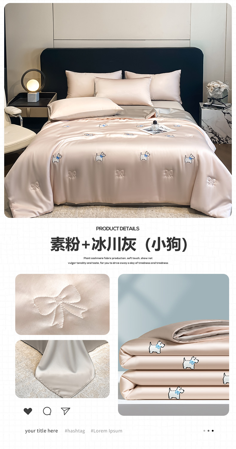 • 91家纺网 家纺一手货源 找家纺 无界 2026新款水洗真丝夏被-散点-贝尔 贝尔 元气白桃+冰川灰(兔子)