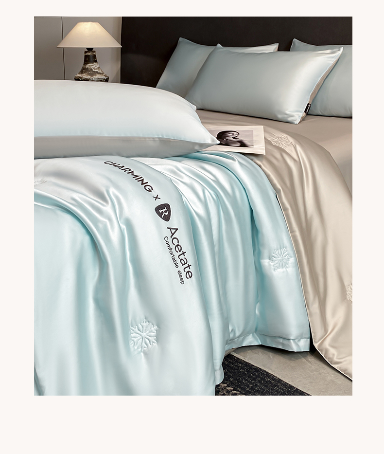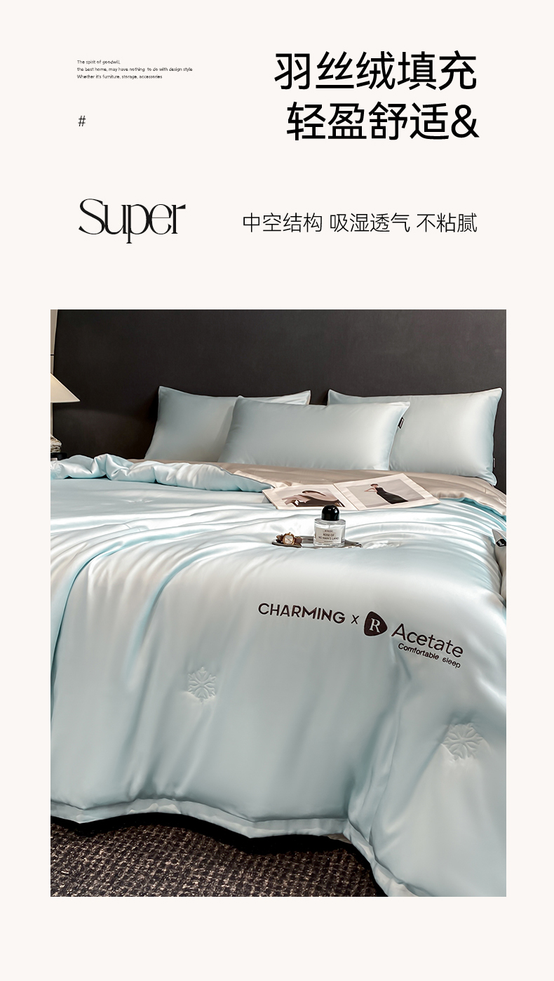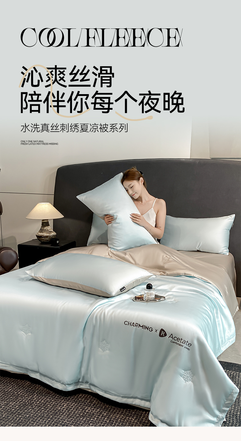 • 91家纺网 家纺一手货源 找家纺 无界 2026新款水洗真丝夏被-雪花绗缝压线-莱拉 莱拉 淡海蓝+冰川灰