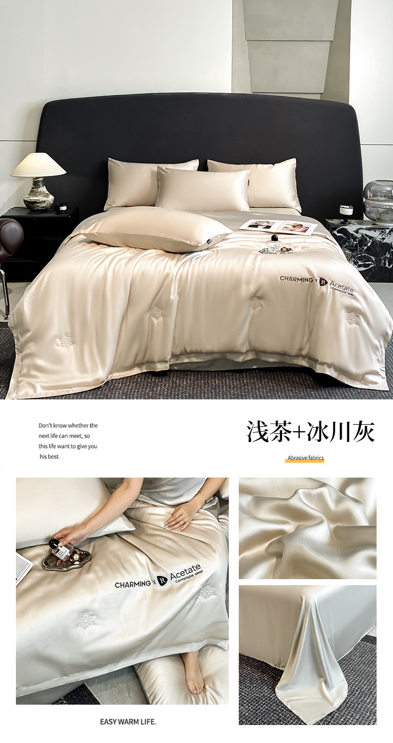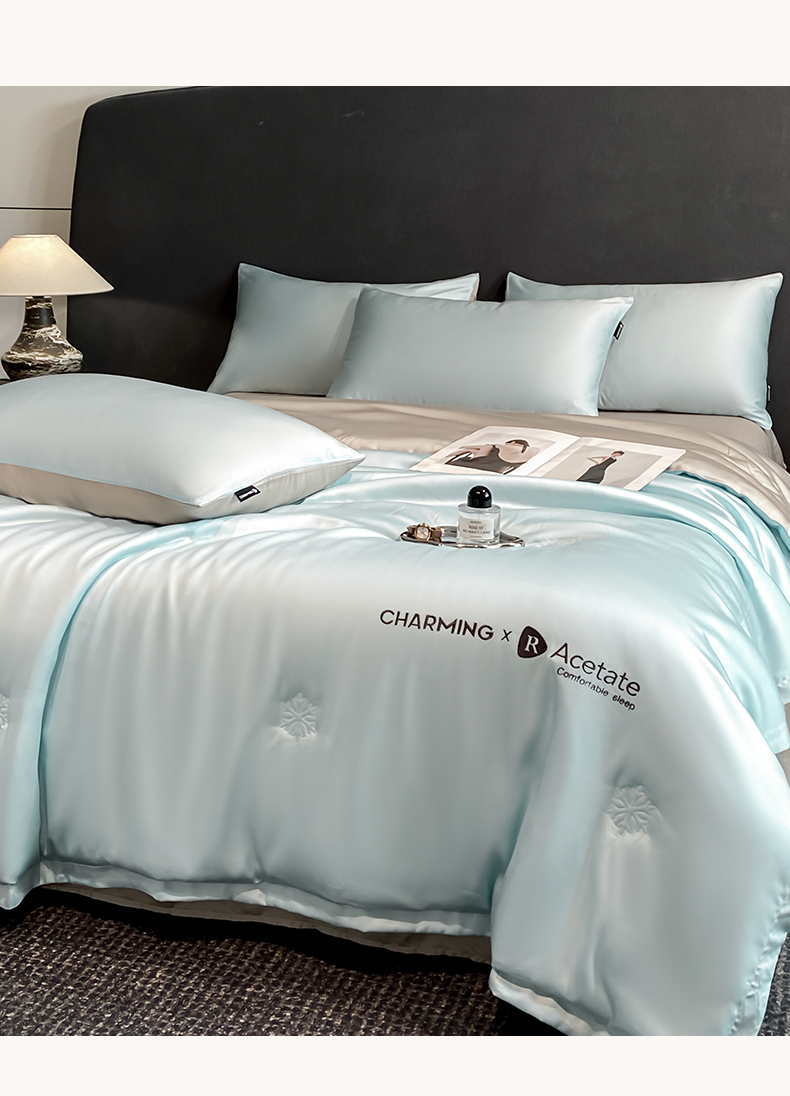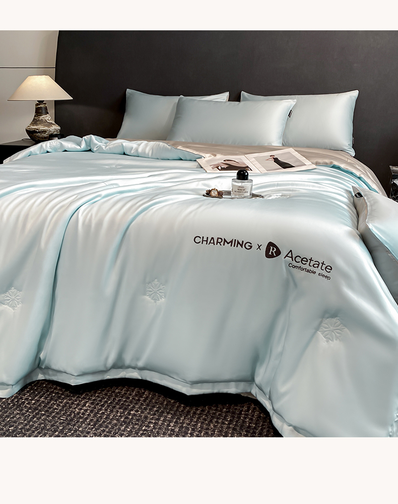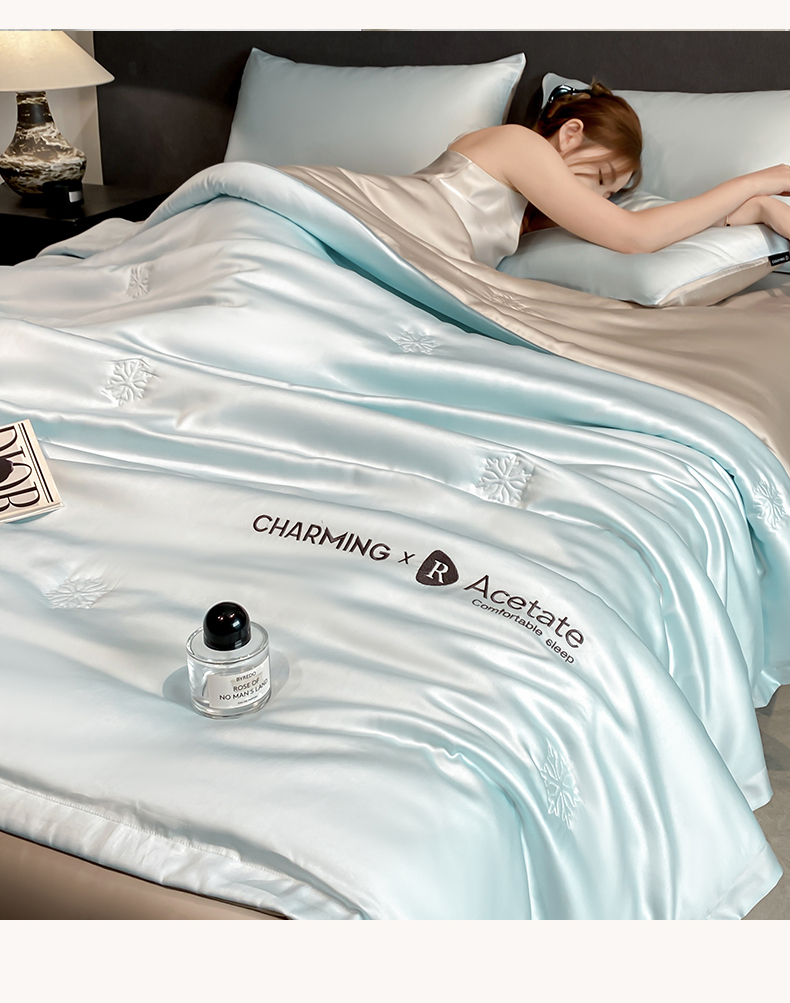 • 91家纺网 家纺一手货源 找家纺 无界 2026新款水洗真丝夏被-雪花绗缝压线-莱拉 莱拉 淡海蓝+冰川灰