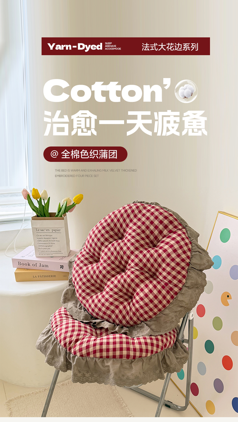 当前位置: 91家纺网 > 商品网购 > 居家布艺 > 坐垫/椅垫/沙发垫 > 椅垫 > 座享家 2026新款全棉色织大花边蒲团 红格