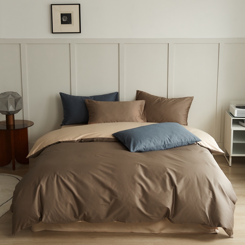 当前位置: 91家纺网 > 商品网购 > 床品套件 > 四件套 > 长绒棉四件套 > 原研 2022新款100支长绒棉纯色双拼系列四件套 木伊棕