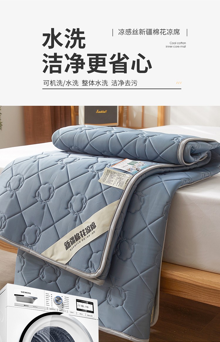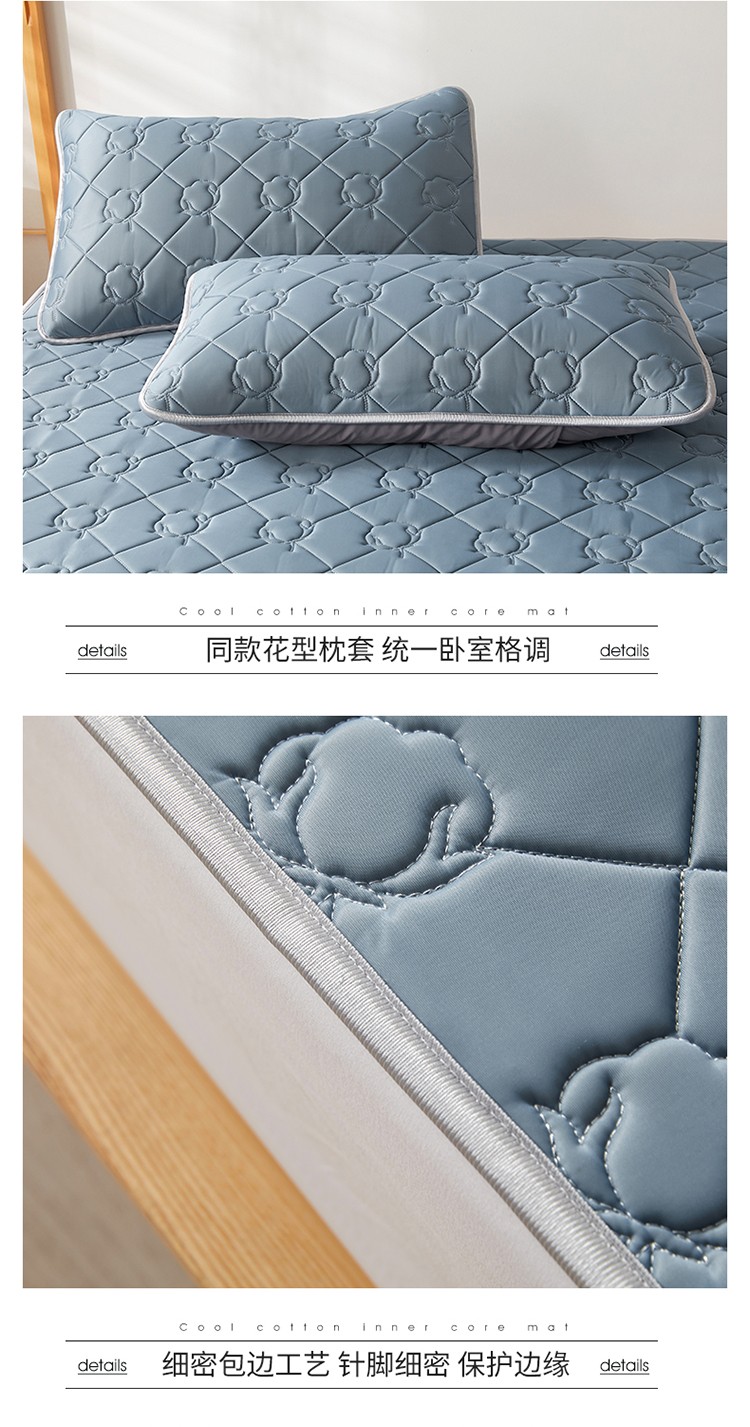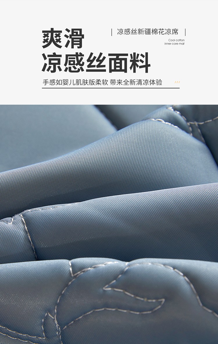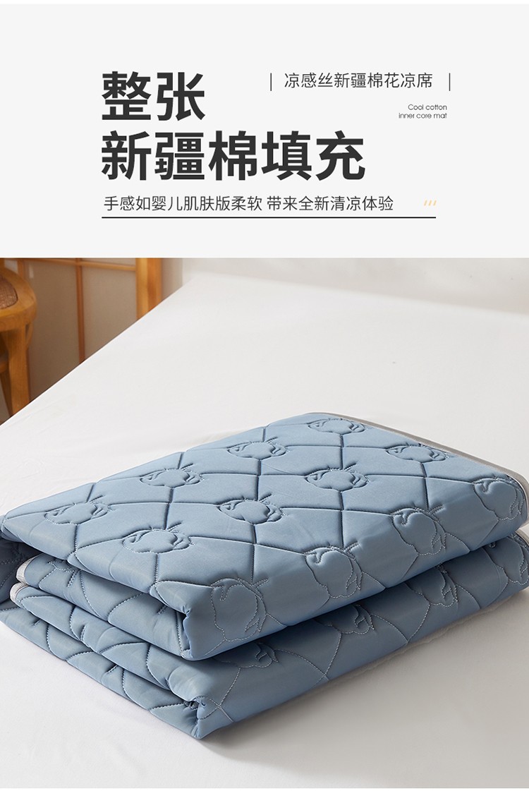 商品名称:西域种棉人 新疆棉花凉席冰丝凉感丝平铺款加厚床单款三件套纯色 卡布里蓝