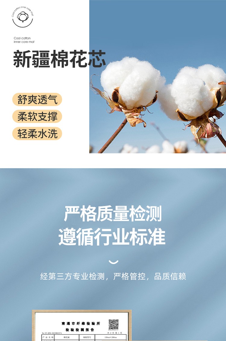 100%新疆棉花全棉棉花床垫软垫棉絮垫子床褥垫子学生单人垫被全棉包检测,米色