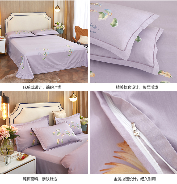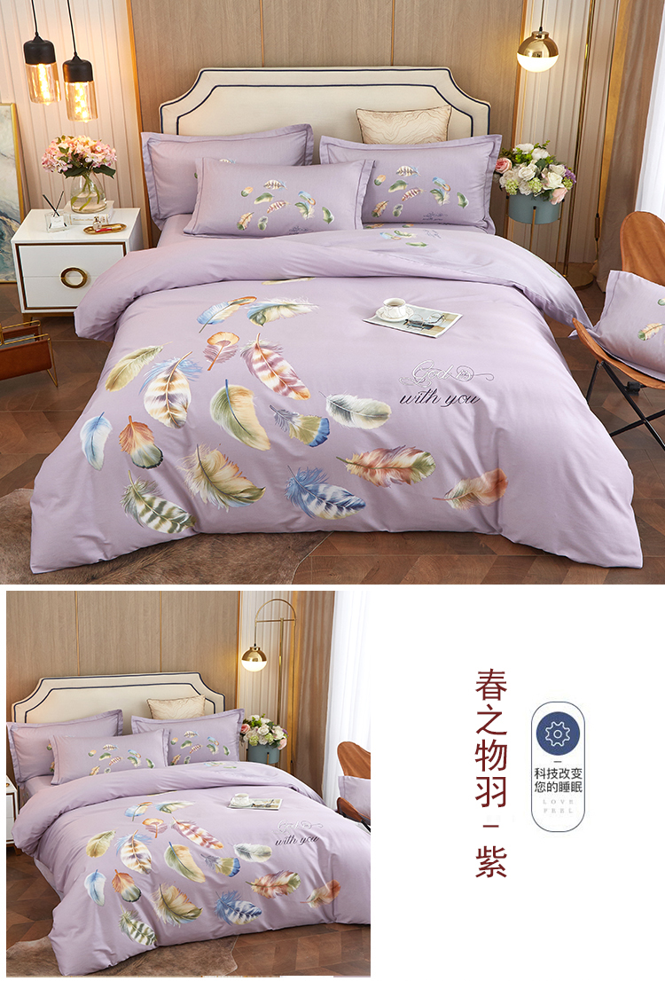 沐白家居2023大版全棉印花四件套 2春之物羽-紫