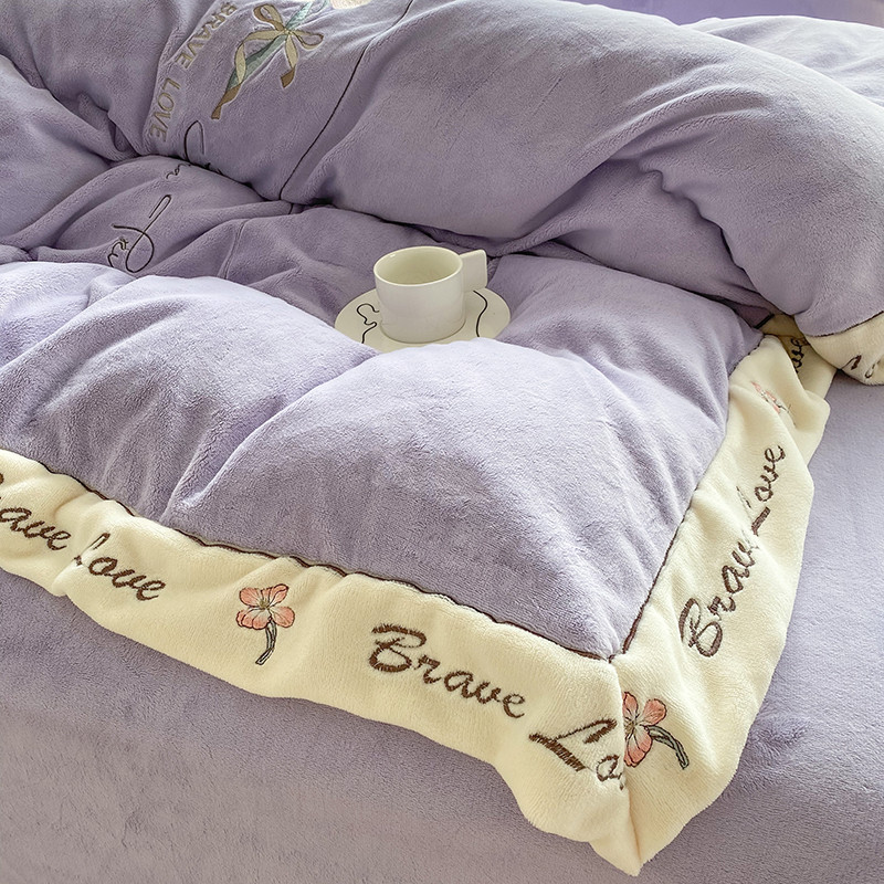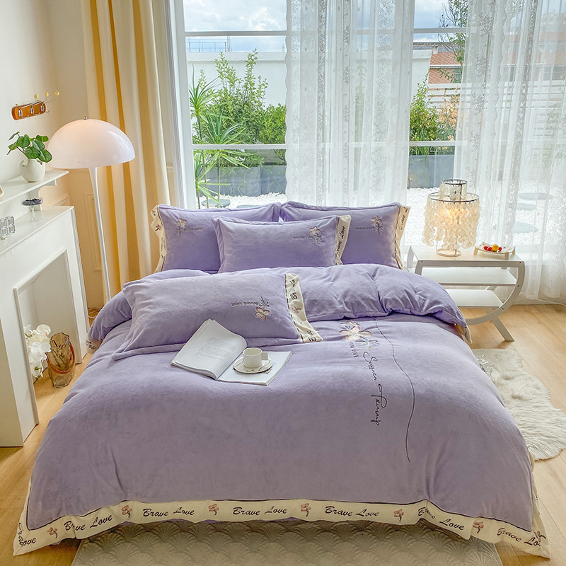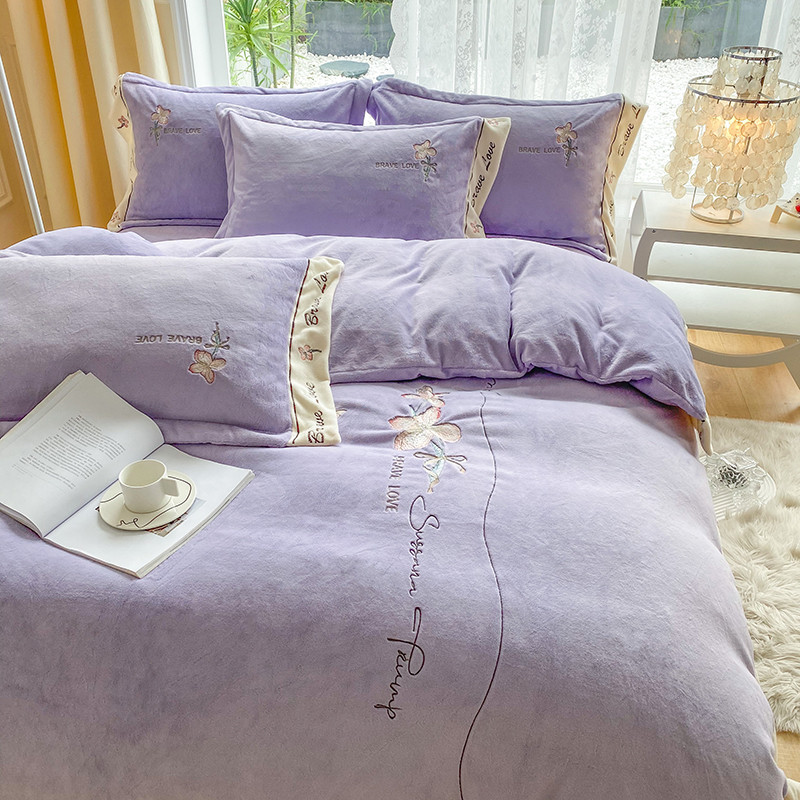 可以家居 2023新款全消光云绒雅思绒牛奶绒刺绣四件套-漫妮 漫妮-紫