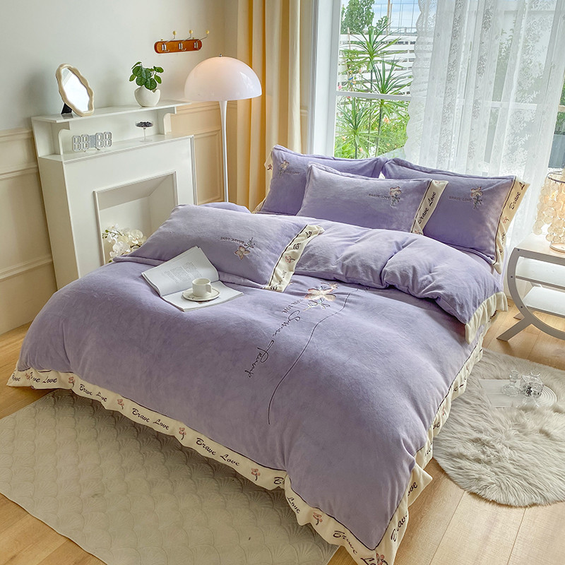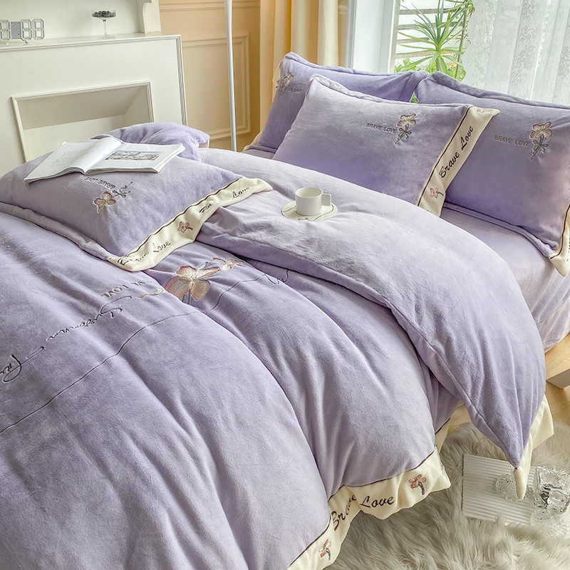 商品名称:可以家居 2023新款全消光云绒雅思绒牛奶绒刺绣四件套-漫妮 漫妮-紫