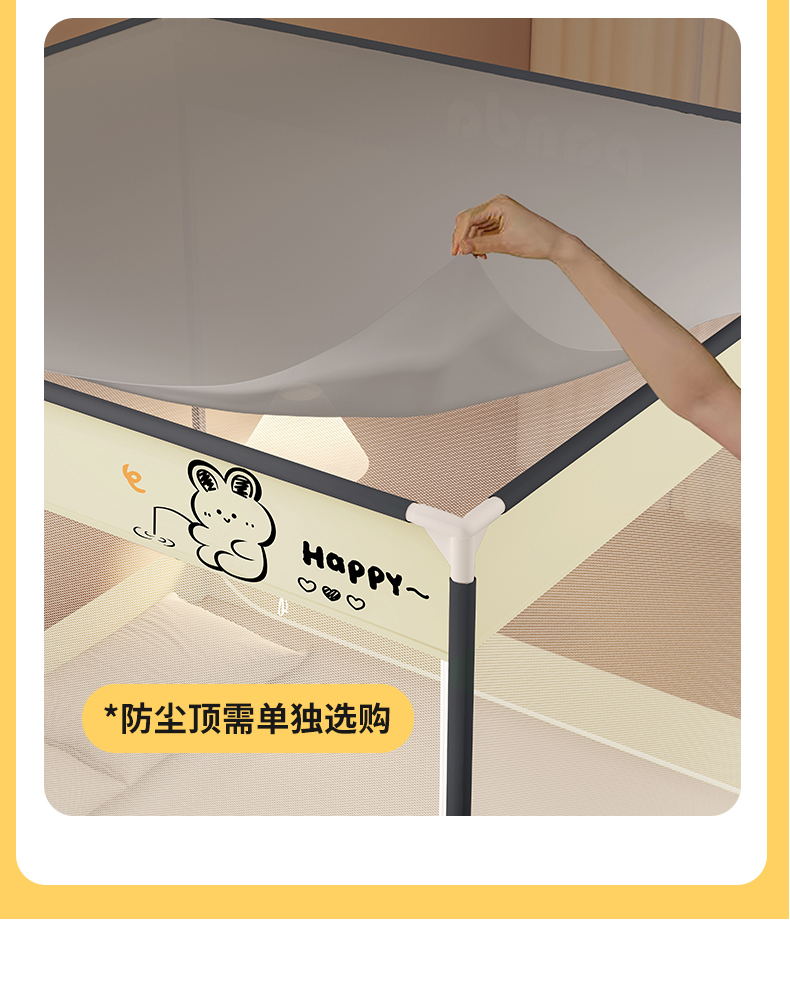 当前位置: 91家纺网 > 商品网购 > 床上用品 > 蚊帐 > 坐床式蚊帐 > 佳梦家纺 2024新款方顶坐床蚊帐系列 卡通系列 happy兔