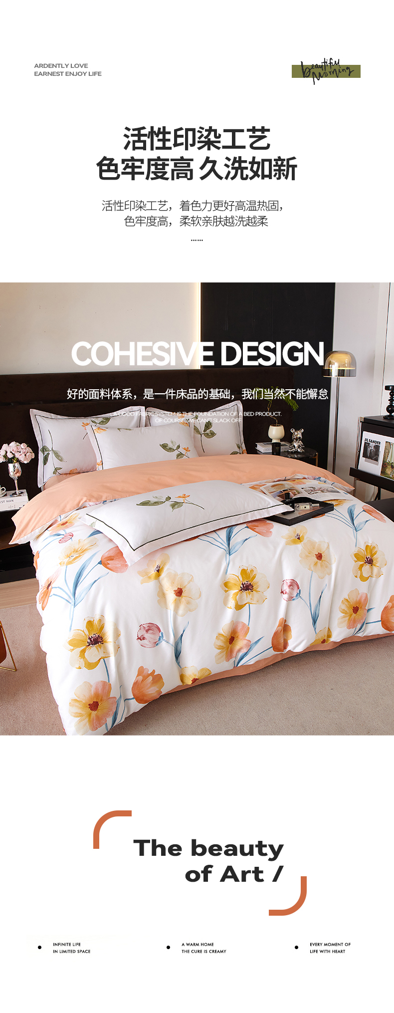商品名称:沐白 2024新款全棉全棉13376全活性印花黄金棉系列四件套 艾米洛