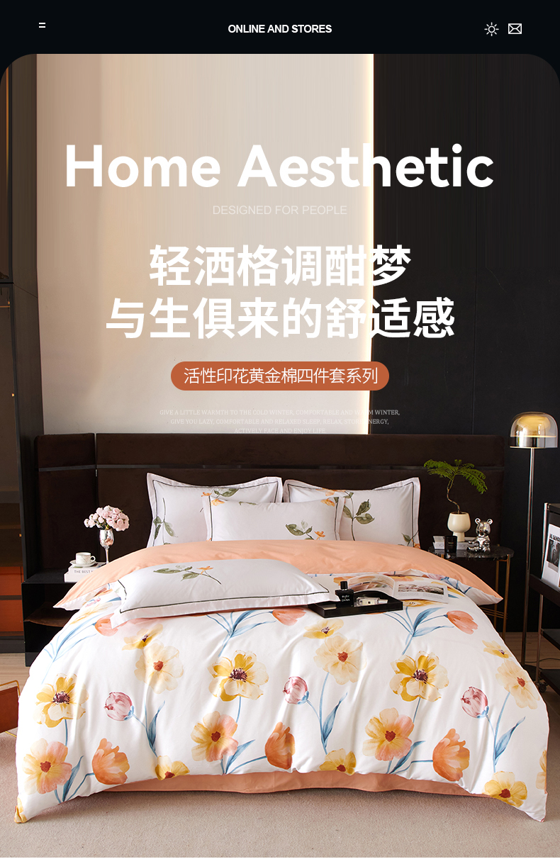 沐白 2024新款全棉全棉13376全活性印花黄金棉系列四件套 艾米洛