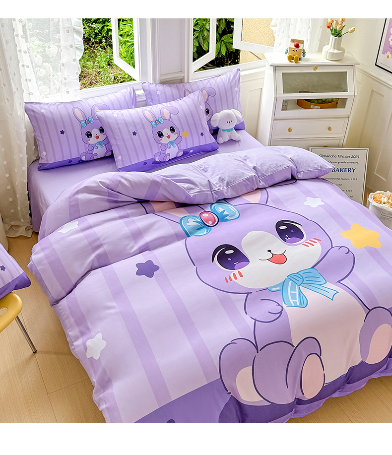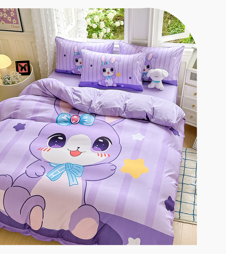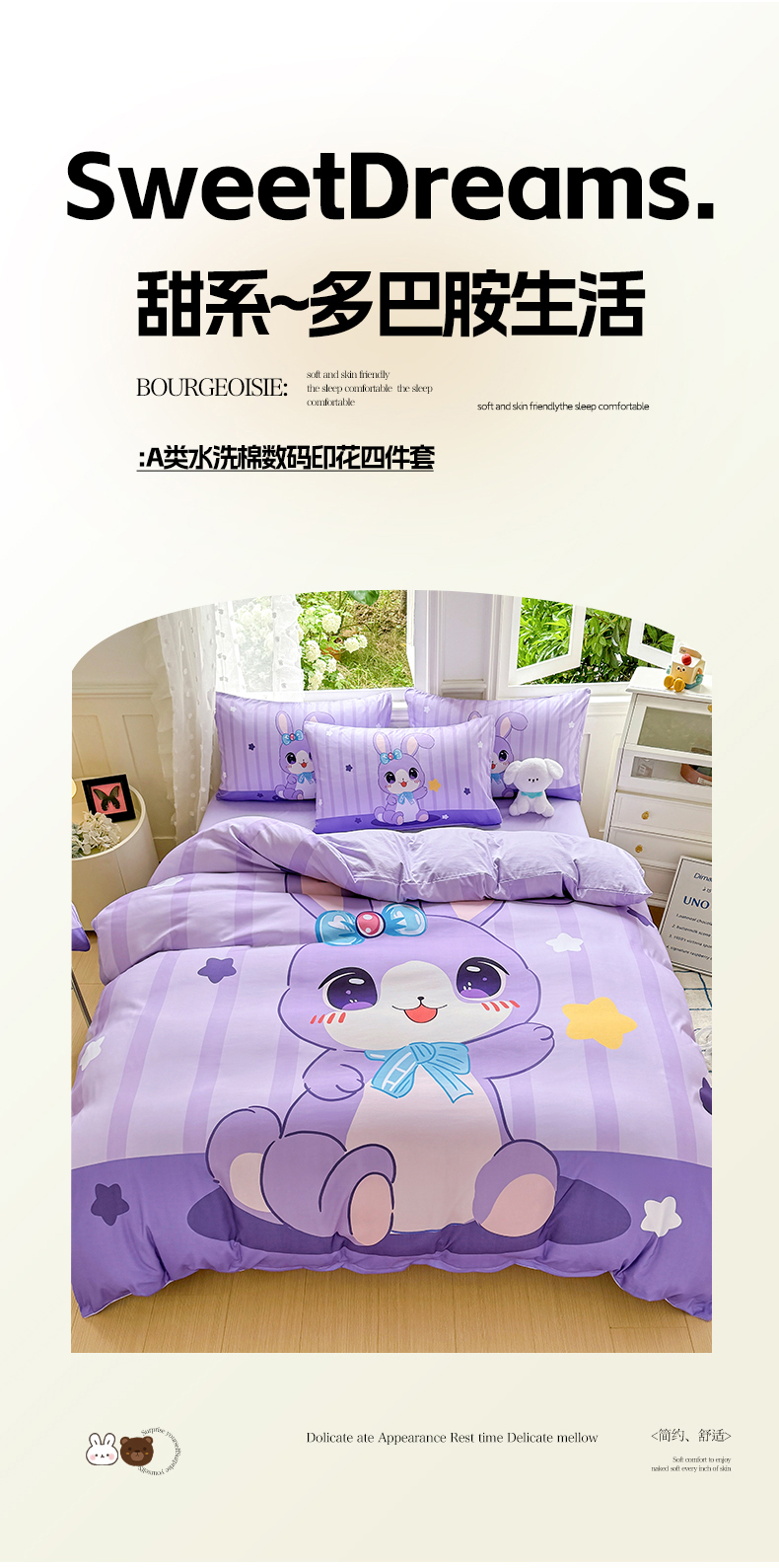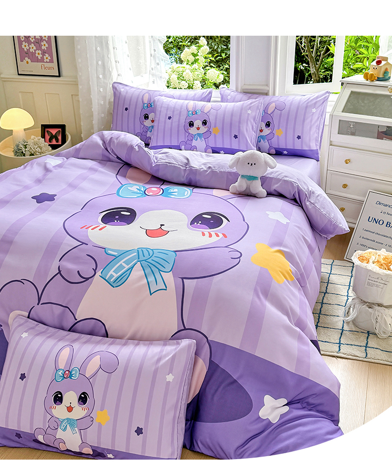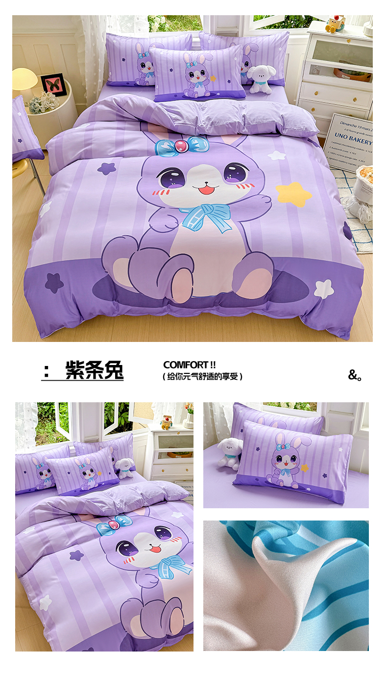 当前位置: 91家纺网 > 商品网购 > 床品套件 > 四件套 > 水洗棉四件套 > 卡斯诺家纺馆 2025新款110克水洗棉大版花四件套(下载包包含买家秀)紫条兔