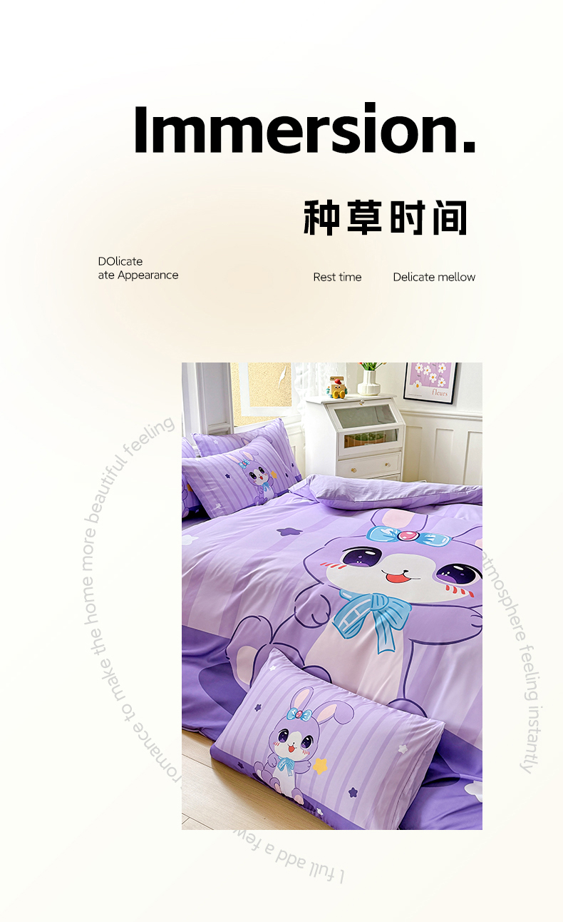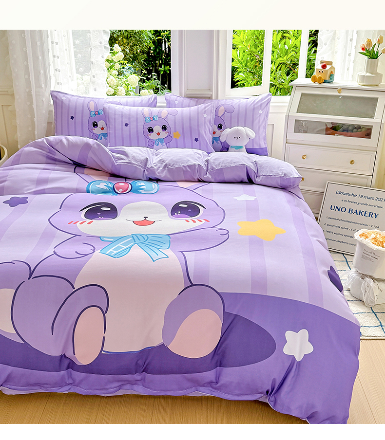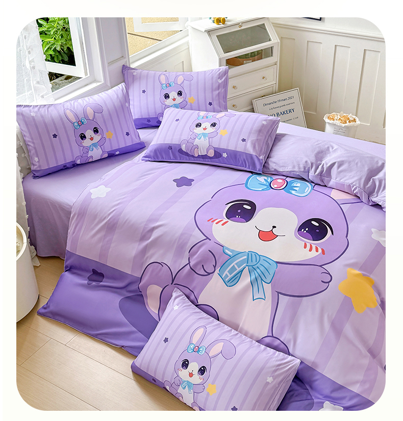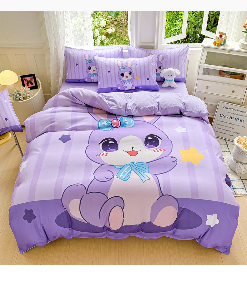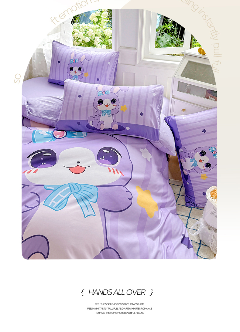 当前位置: 91家纺网 > 商品网购 > 床品套件 > 四件套 > 水洗棉四件套 > 卡斯诺家纺馆 2025新款110克水洗棉大版花四件套(下载包包含买家秀)紫条兔