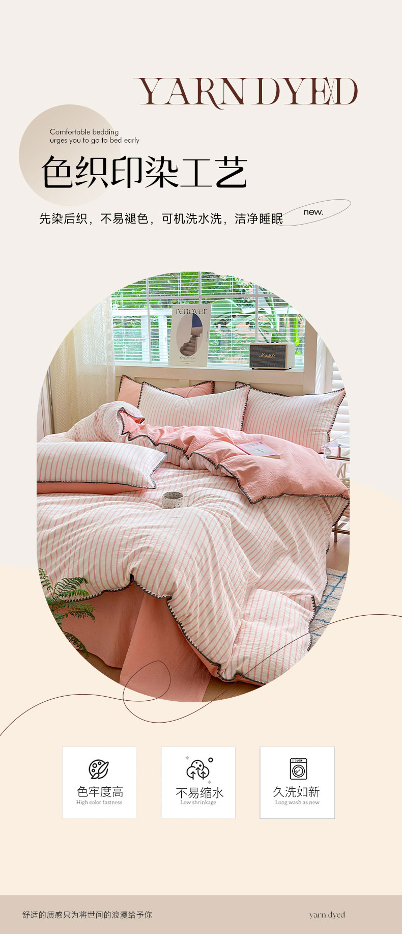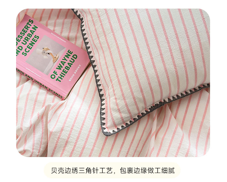 当前位置: 91家纺网 > 商品网购 > 床品套件 > 四件套 > 全棉普通四件套 > 晚依家纺 2024新款全棉色织水洗棉贝壳边绣三角针工艺四件套 诺言-粉