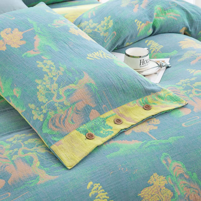 (总)双层纱家居 2025新款全棉纯棉双层纱工艺款四件套,素纱蝶梦-红蕊,素纱蝶梦-陌森,素纱蝶梦-青栀,素纱蝶梦-纤芷,素纱蝶梦-南鸢,素纱蝶梦-玉茗