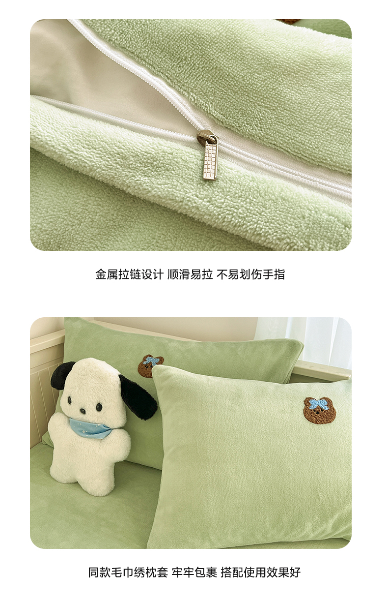 商品名称:(总)亨通家纺 2024新款牛奶绒毛巾绣四件套系列-嘟嘟熊