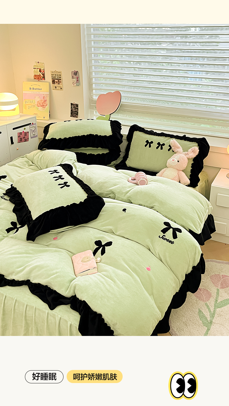 商品名称:亨通家纺 2024新款高克重法式牛奶绒四件套系列-赫本风 赫本风-蓝