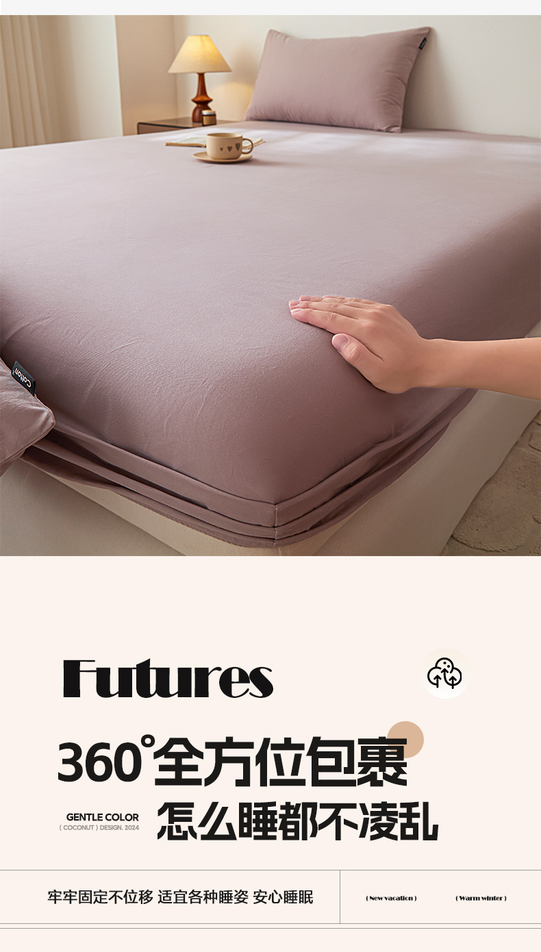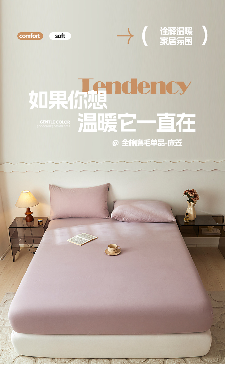 • 91家纺网 家纺一手货源 找家纺 涵宸家纺 2024新款全棉磨毛四件套纯厚系列-单床笠 a星空紫