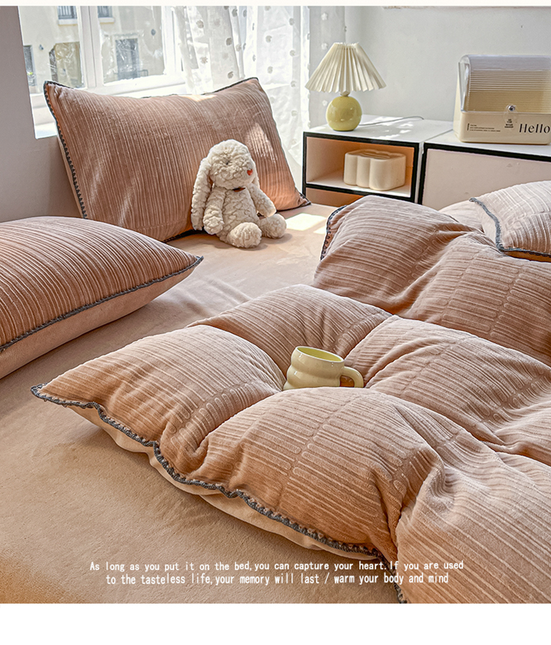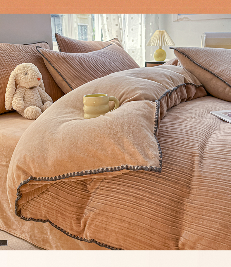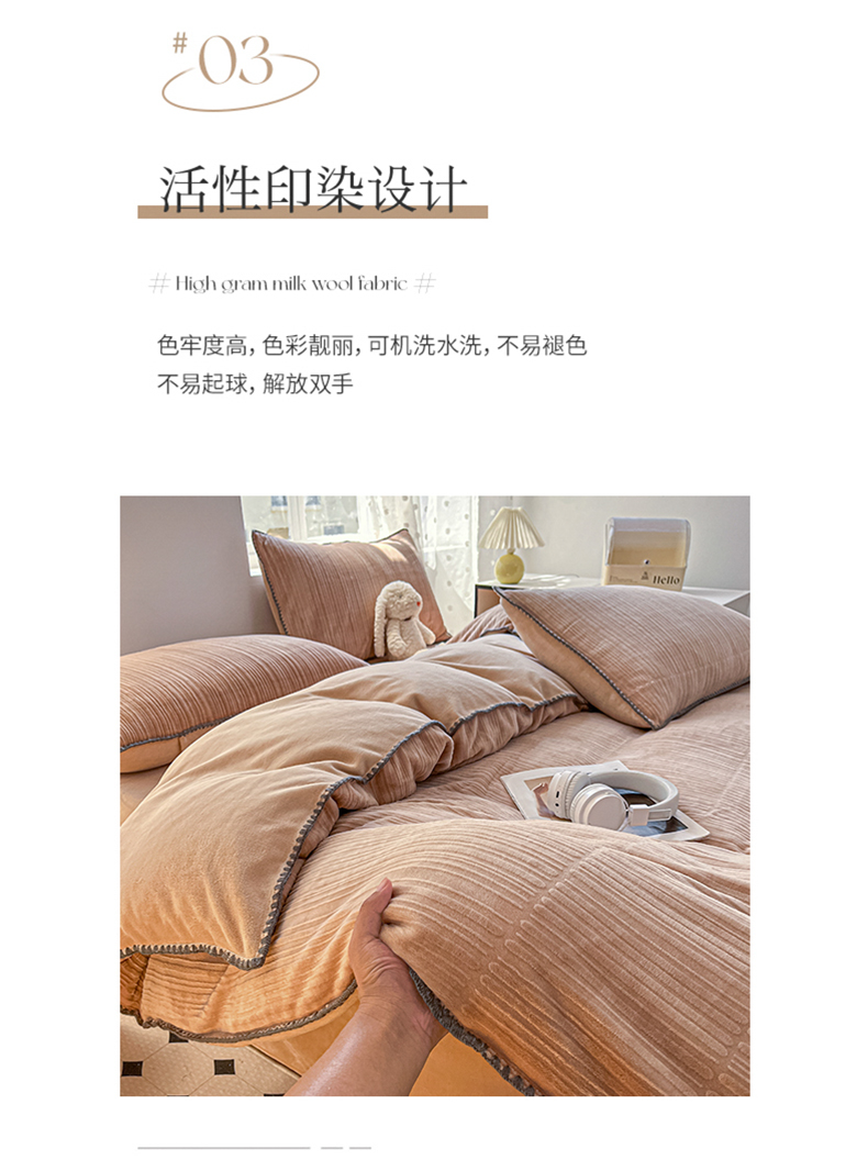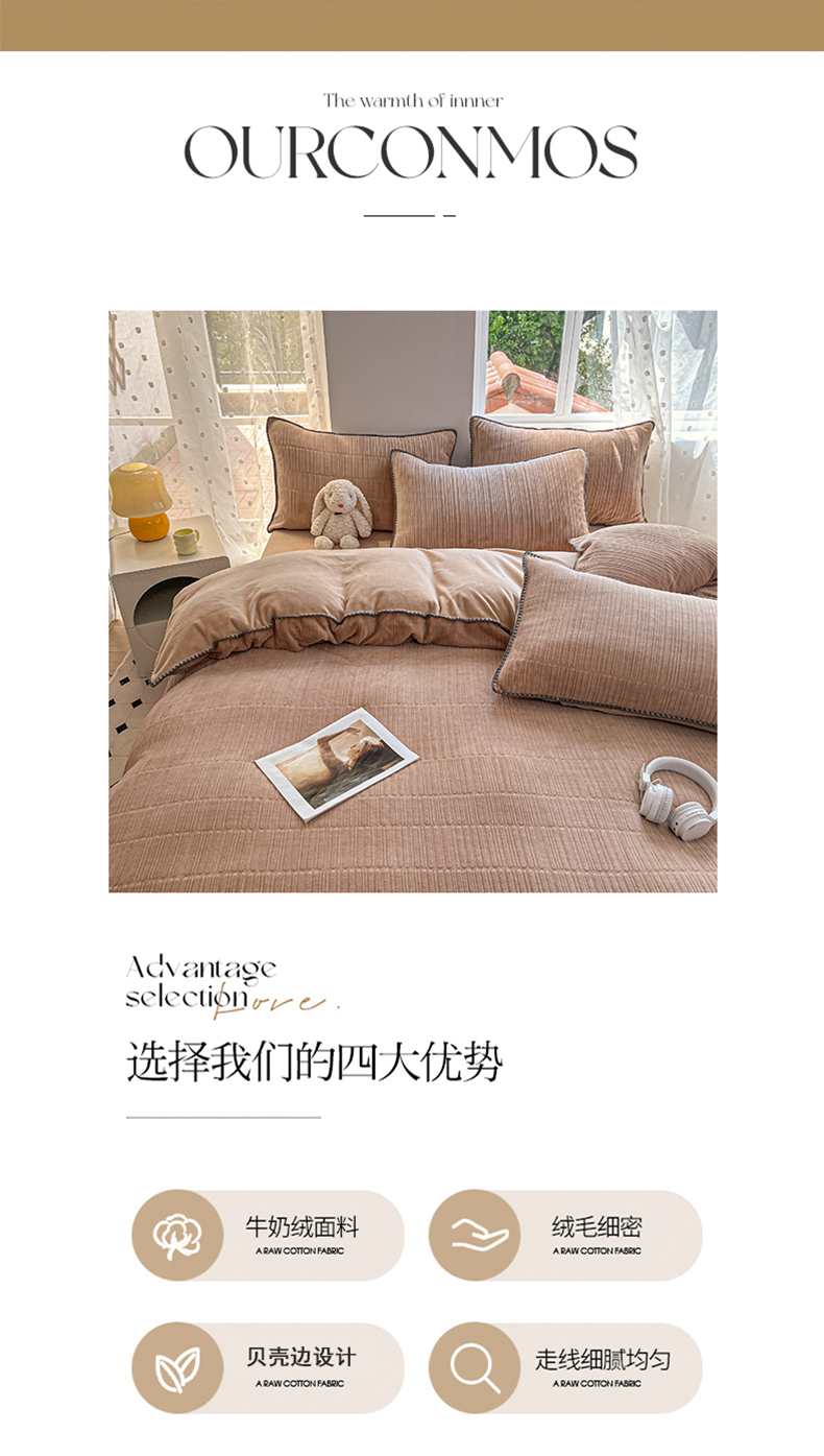 当前位置: 91家纺网 > 商品网购 > 床品套件 > 四件套 > 牛奶绒四件套 > 晚依家纺 2024新款230g纯色立体雕花牛奶绒四件套贝壳边加厚保暖定制定做 香榭格调-杏