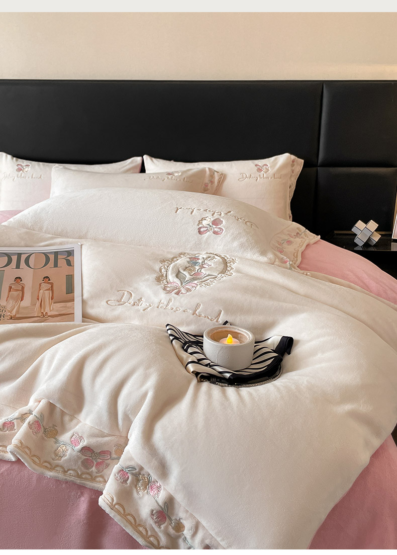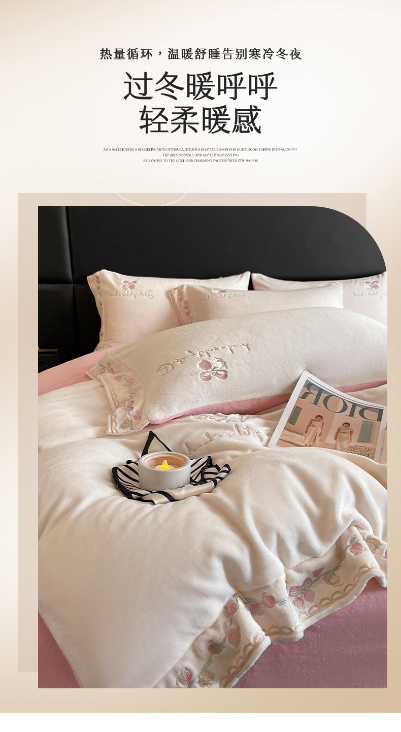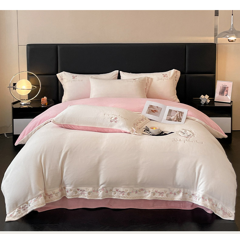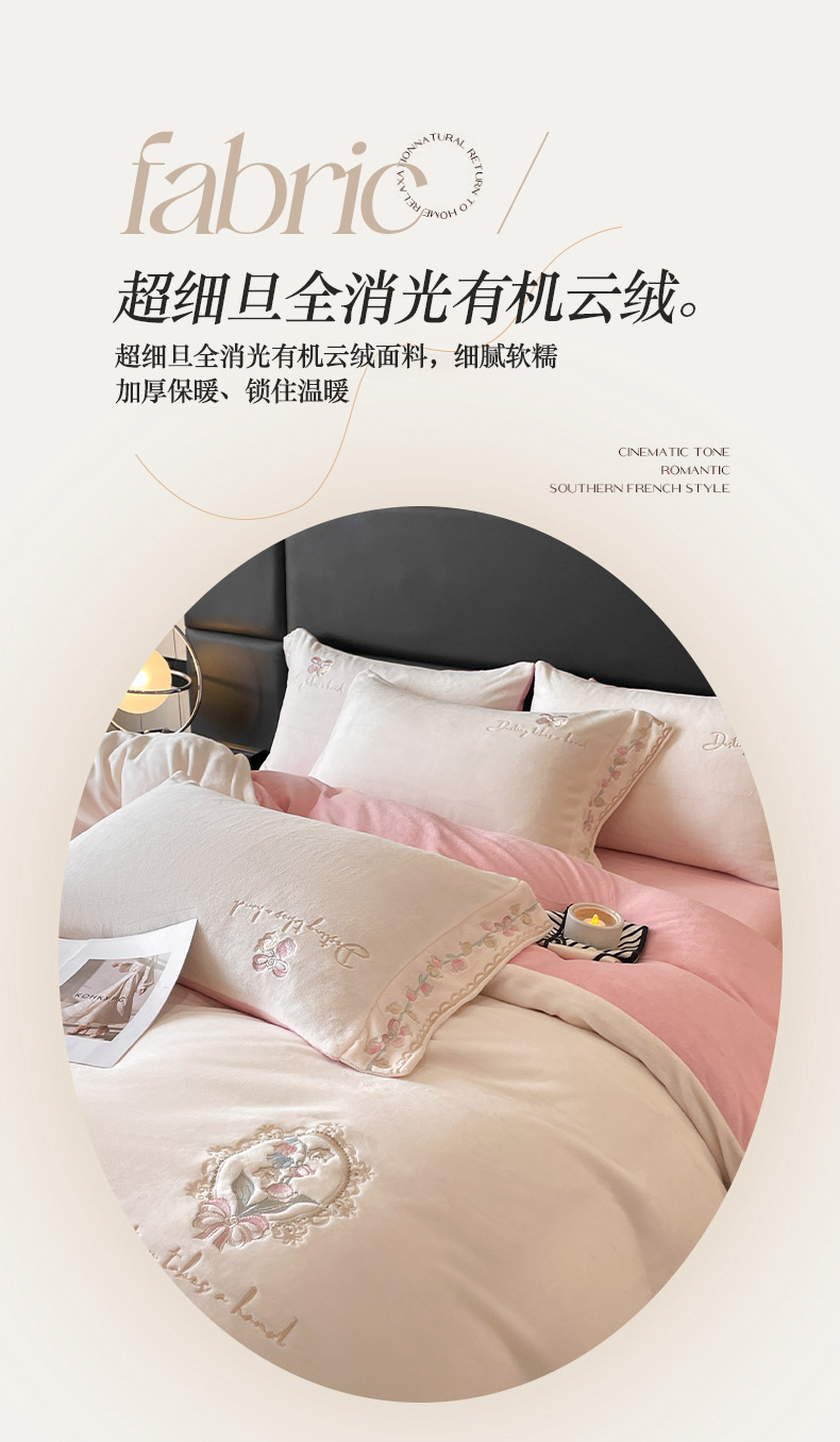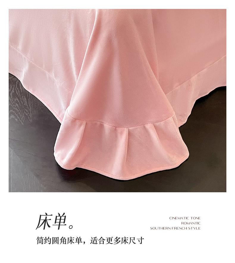 (总)可以家居 2025新款高克重全消光超细旦奶芙云绒四件套-玛利亚系列,粉豆沙,贵族粉,新芽绿