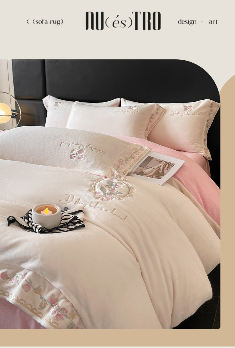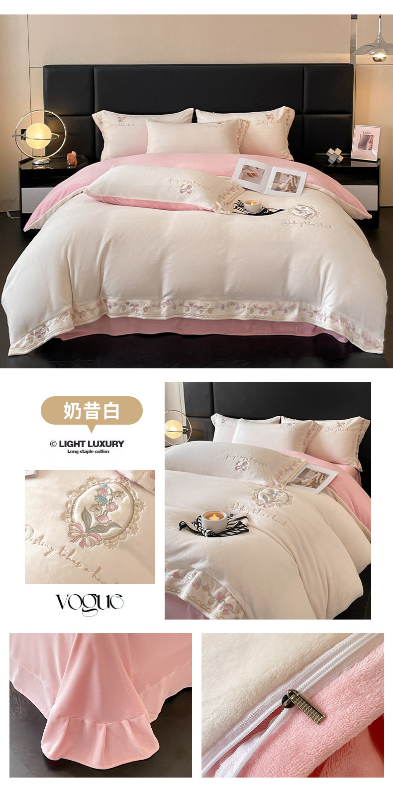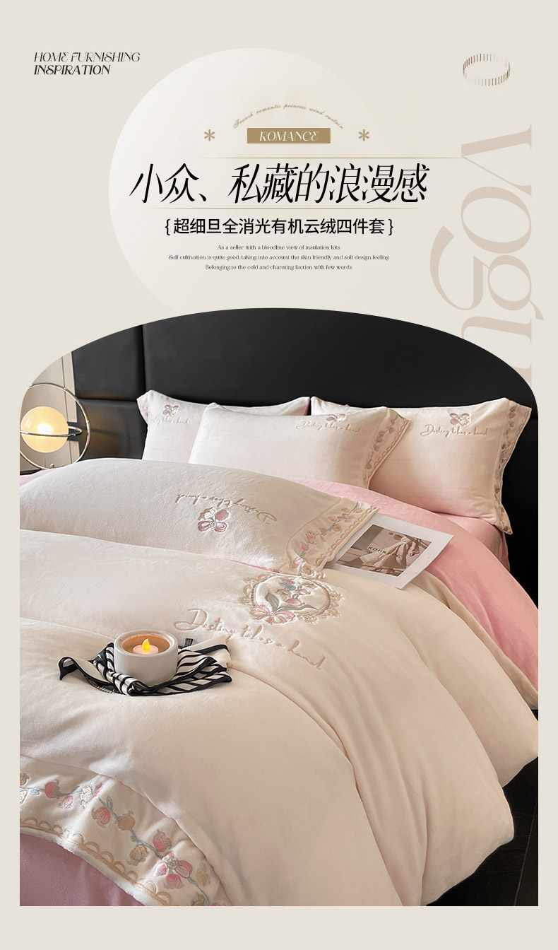 (总)可以家居 2025新款高克重全消光超细旦奶芙云绒四件套-玛利亚系列-莱卡芙,贵族粉,清雅蓝,伯爵绿,优雅紫,粉豆沙