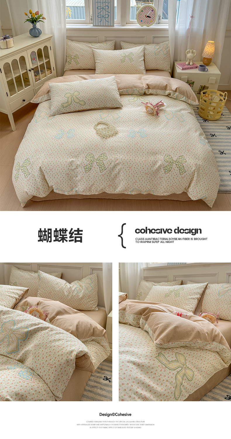 沐棉家居 2025新款全棉印花四件套 蝴蝶结