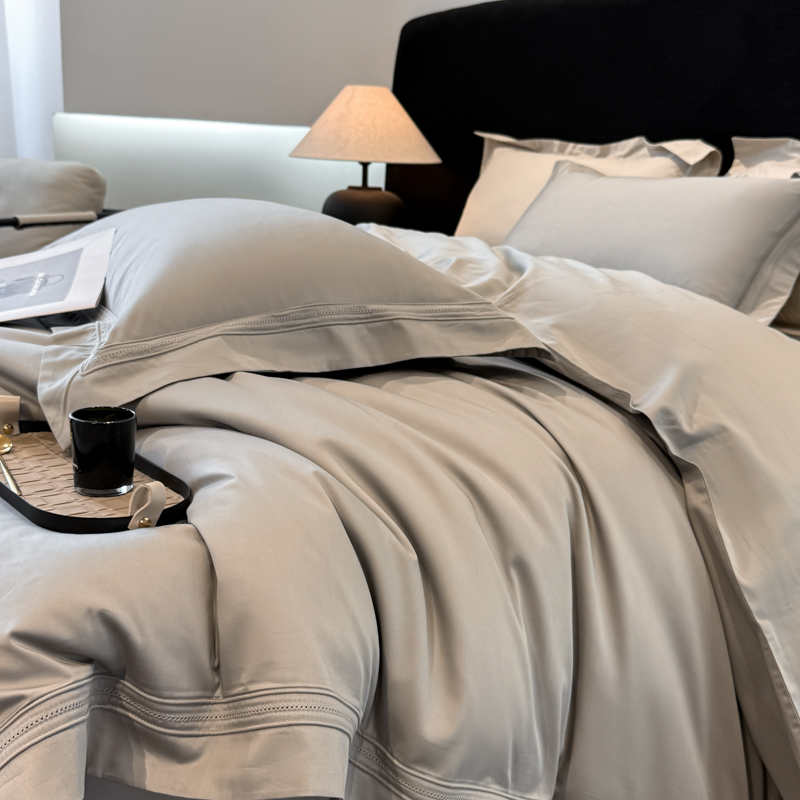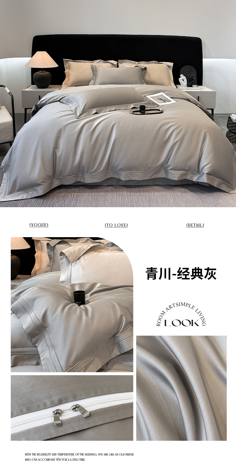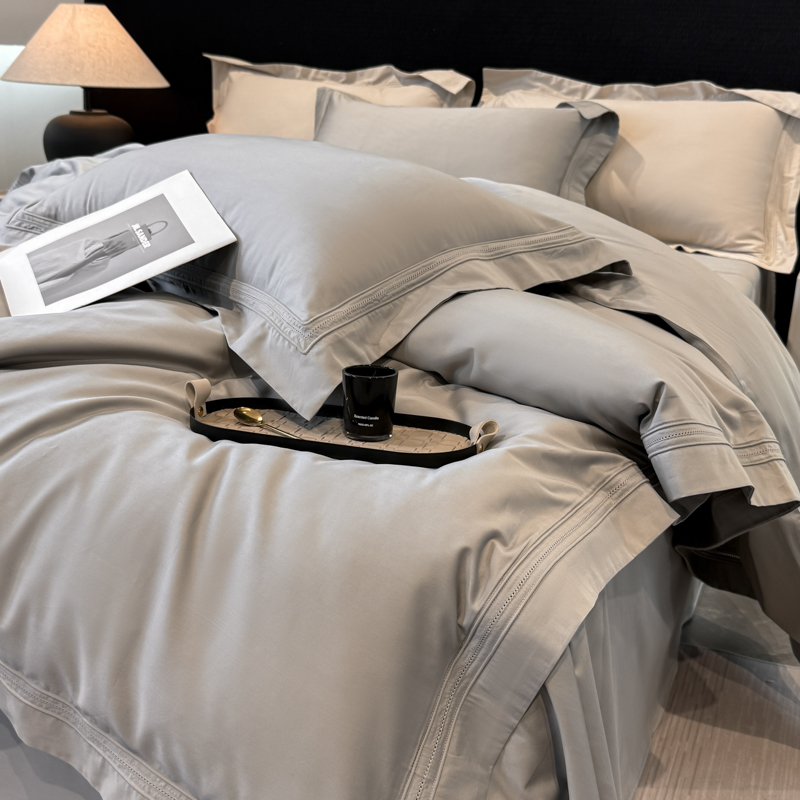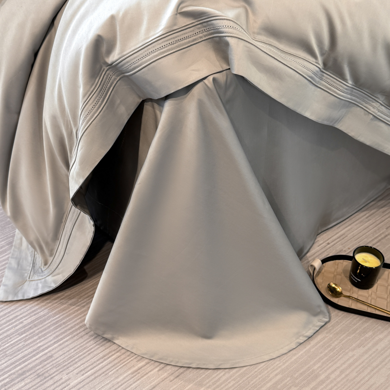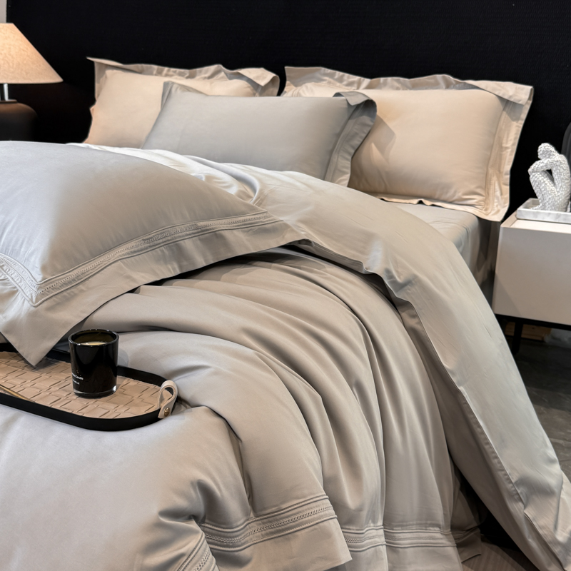 21度C 2025春夏新款50双股100S长绒棉纯棉双埋线镂空四件套 经典灰