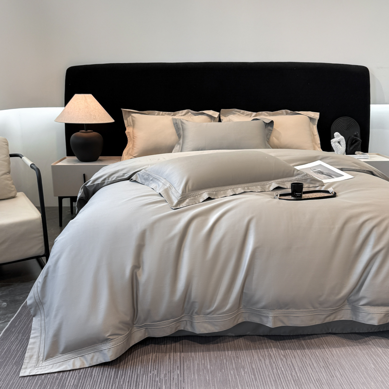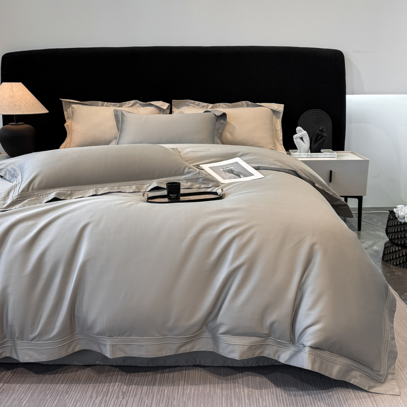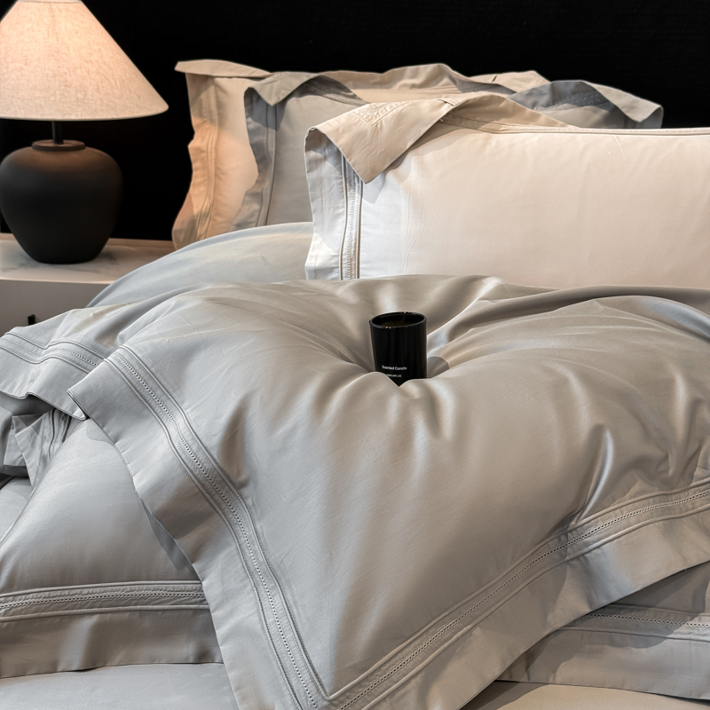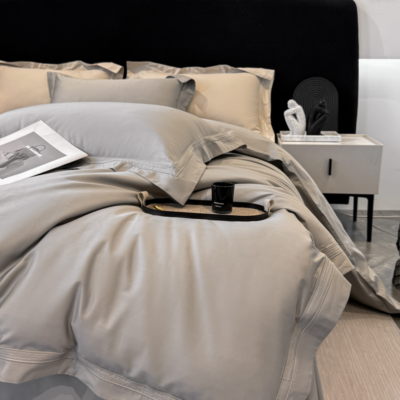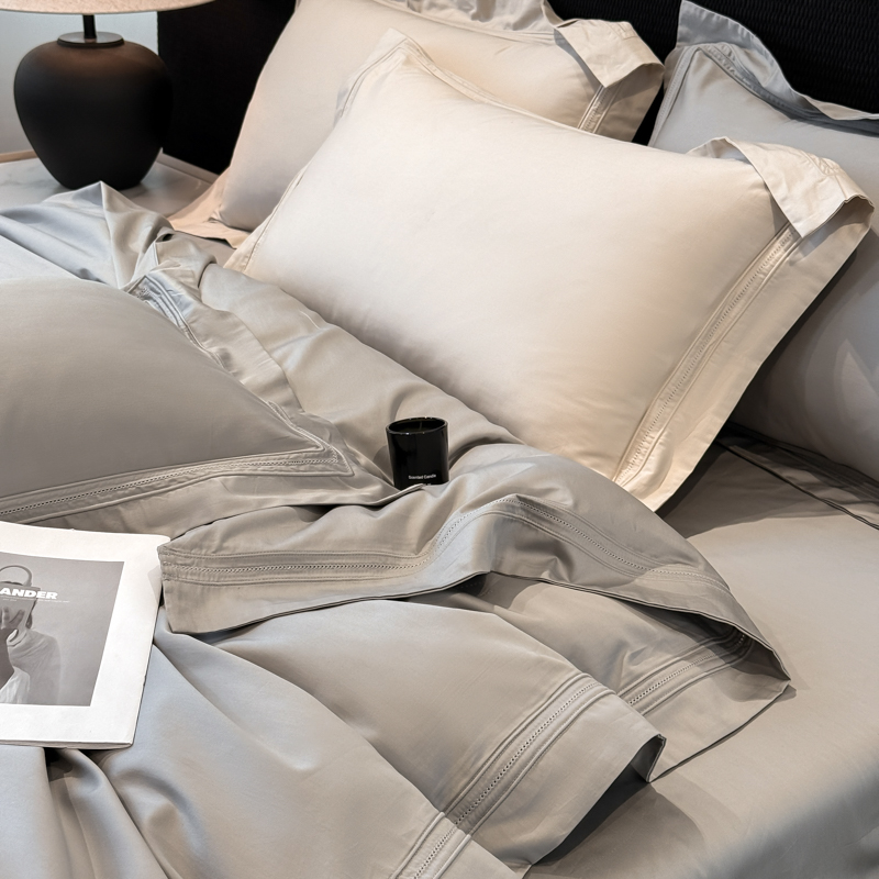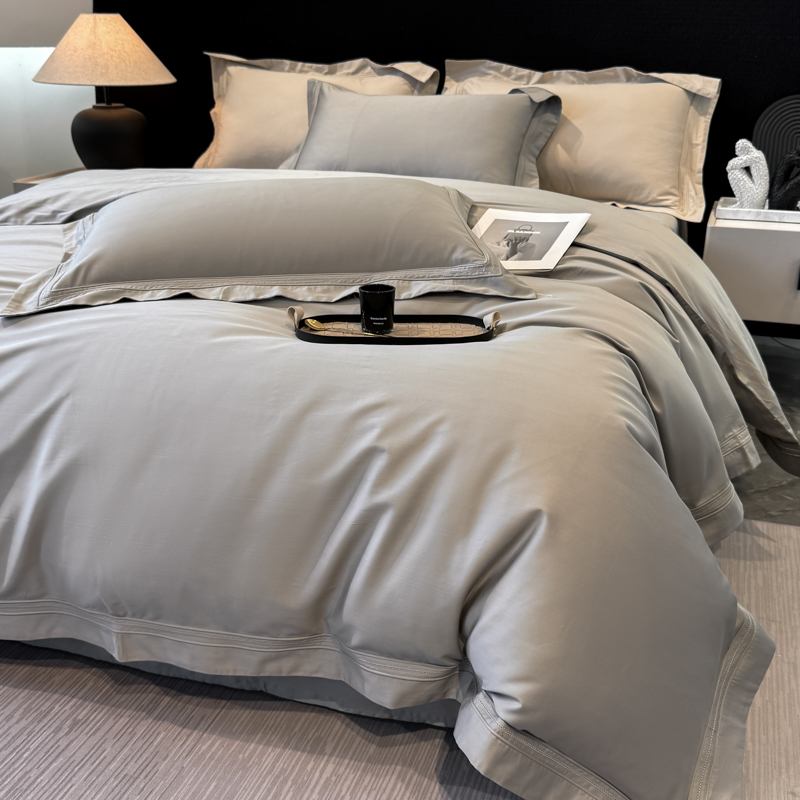 21度C 2025春夏新款50双股100S长绒棉纯棉双埋线镂空四件套 经典灰