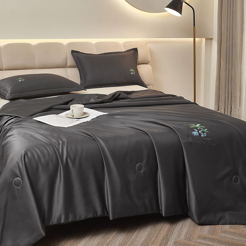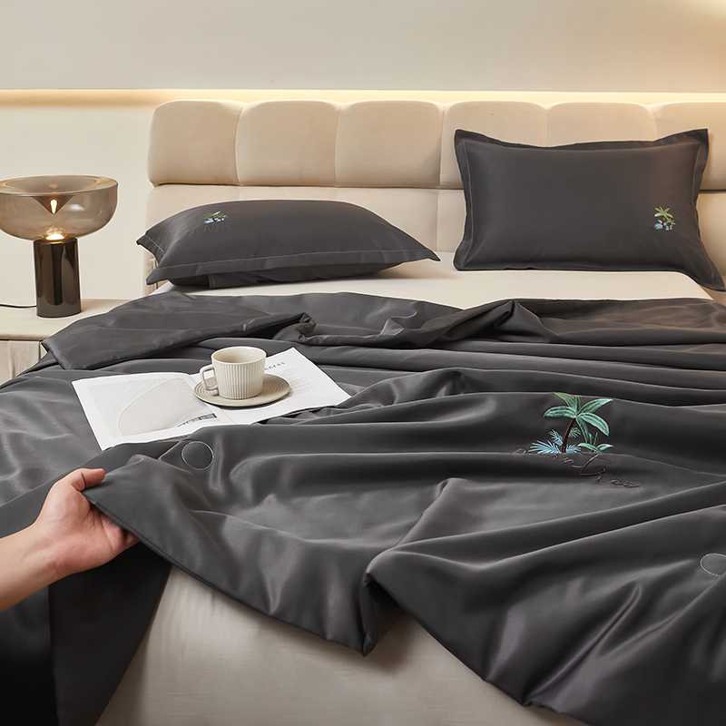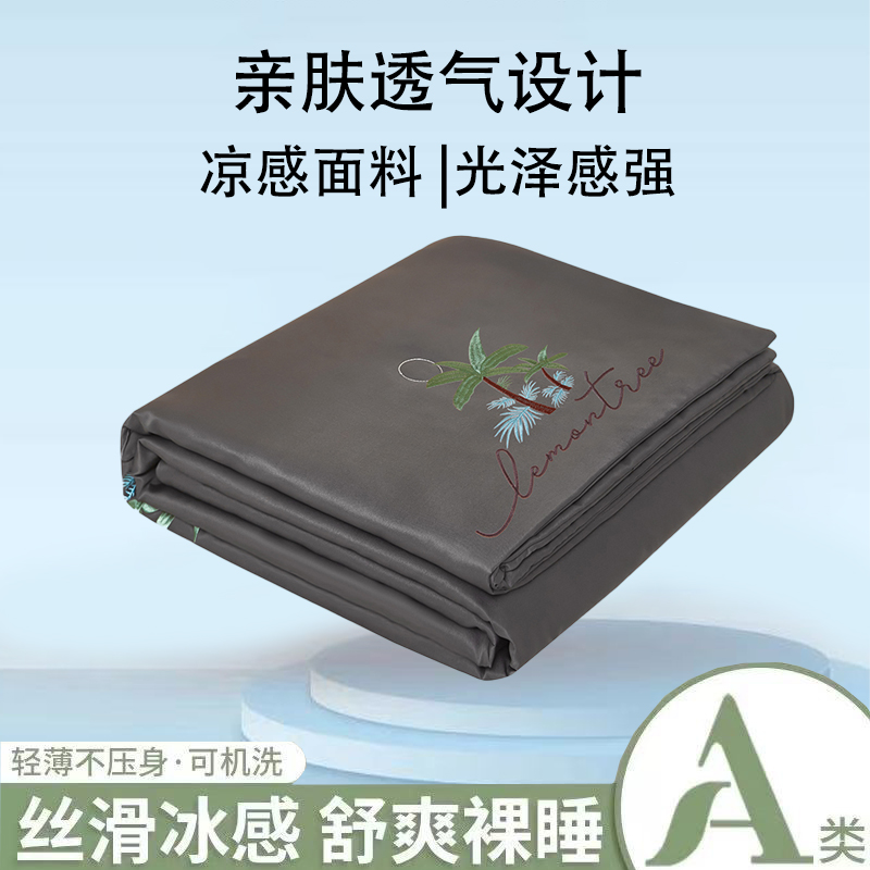 商品名称:圣比熊 2025新款刺绣款凉感丝夏被冰丝夏凉空调被被子被芯 深灰