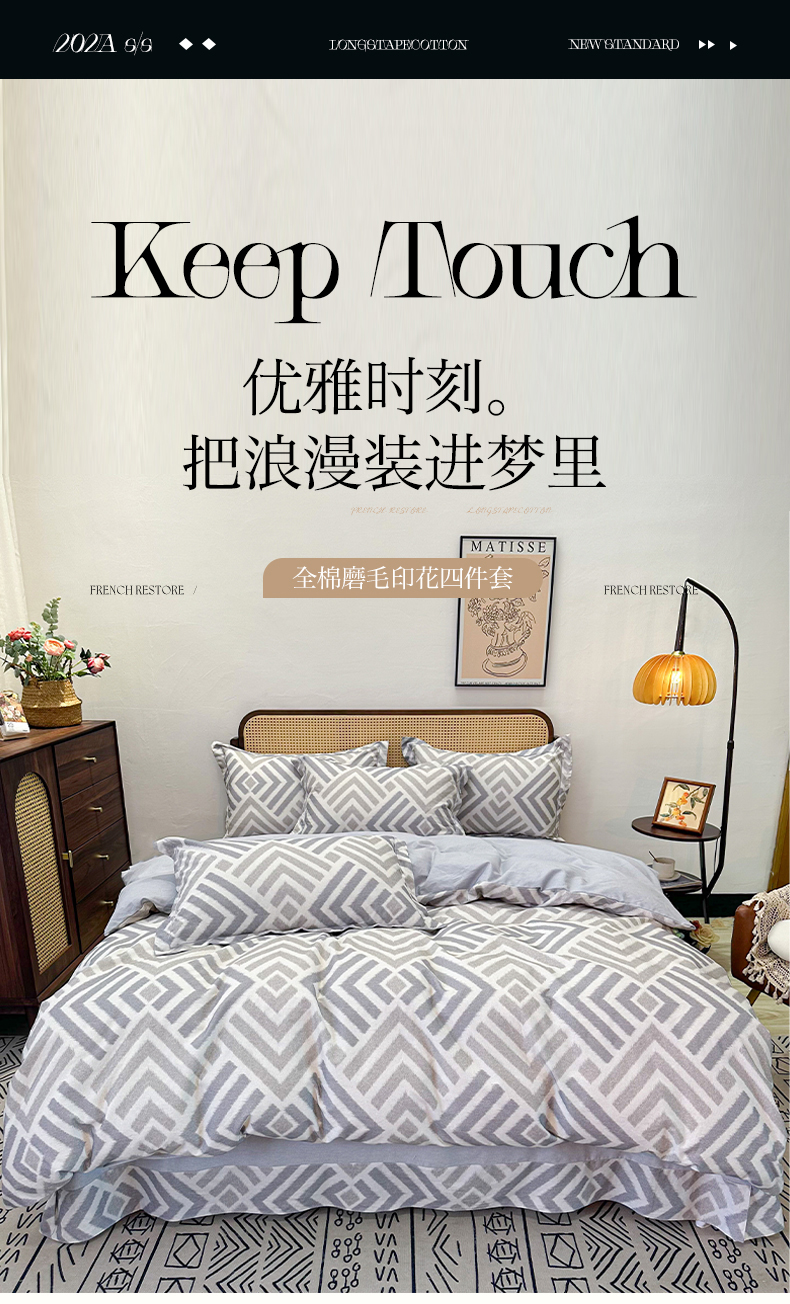 当前位置: 91家纺网 > 商品网购 > 床品套件 > 四件套 > 全棉普通四件套 > 橙艺家居 2025新款秋冬全棉纯棉磨毛四件套 寻意