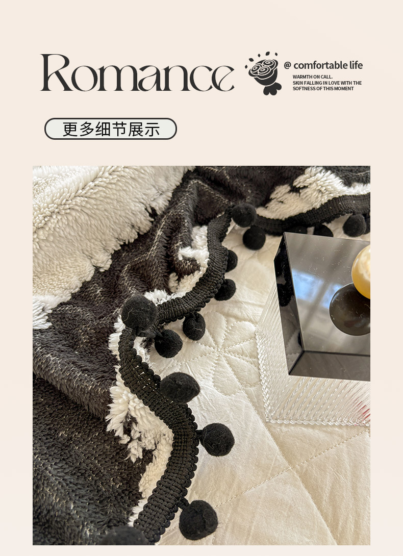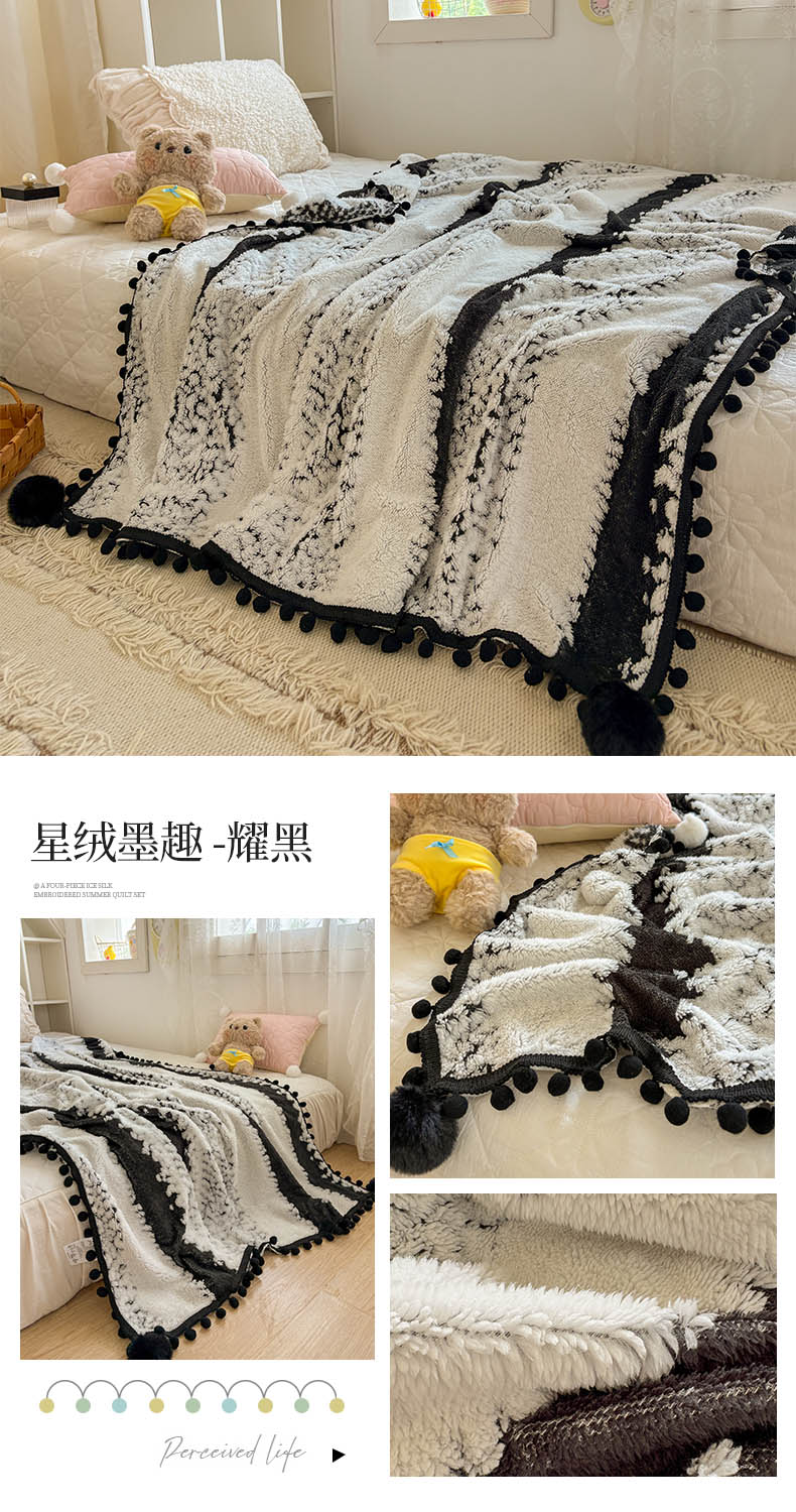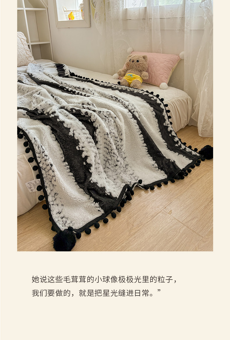 潮邦创意家居 2025新款250g阳离子提花小球毯盖毯毯子-星绒墨趣 星绒墨趣 -耀黑