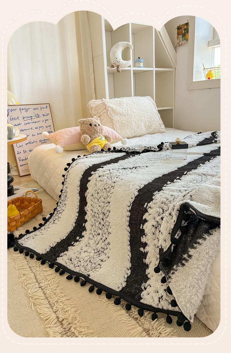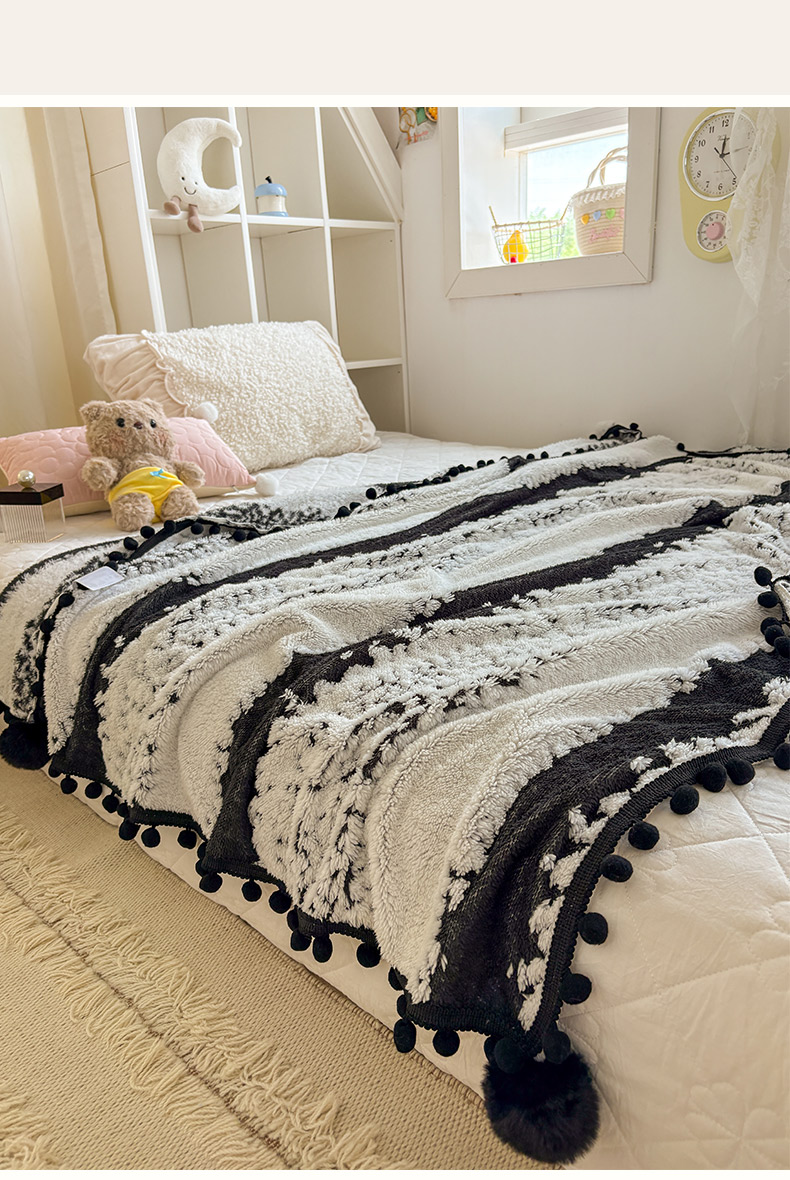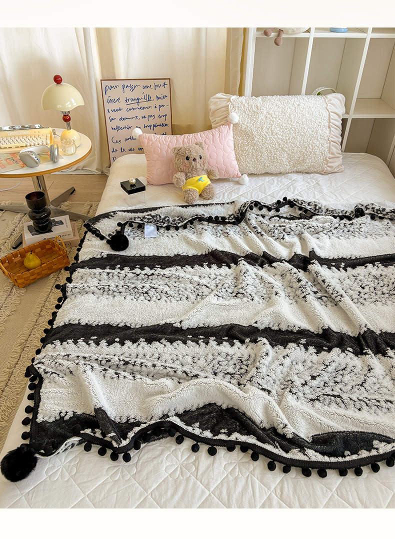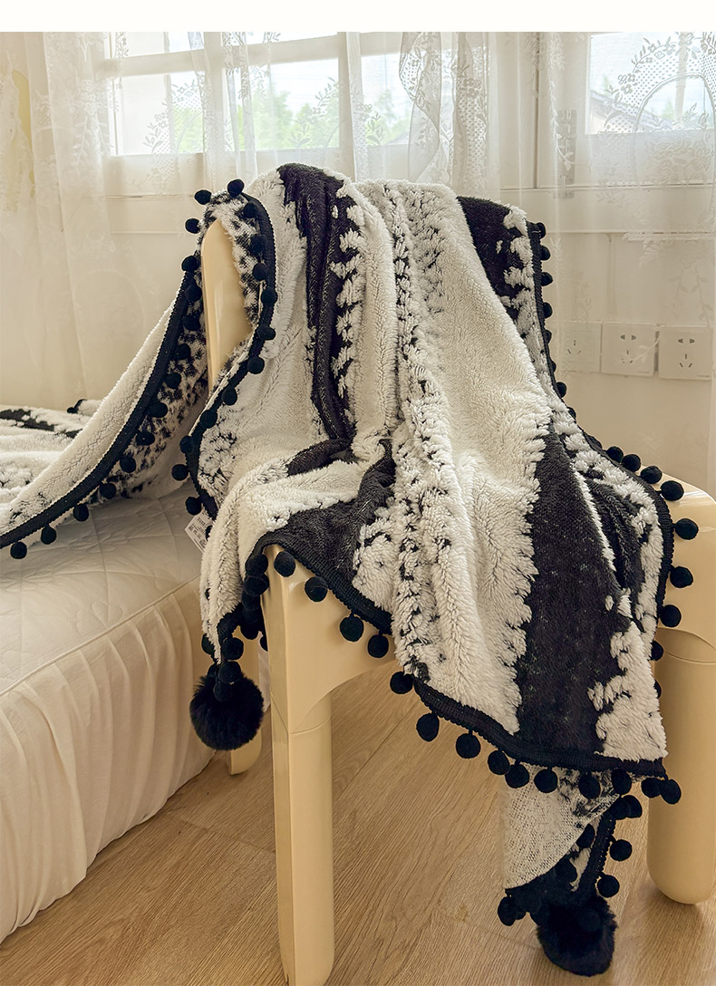 潮邦创意家居 2025新款250g阳离子提花小球毯盖毯毯子-星绒墨趣 星绒墨趣 -耀黑