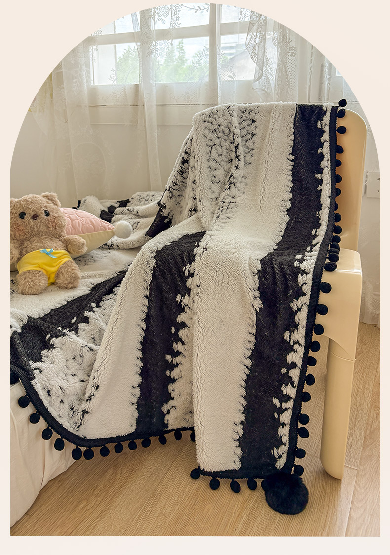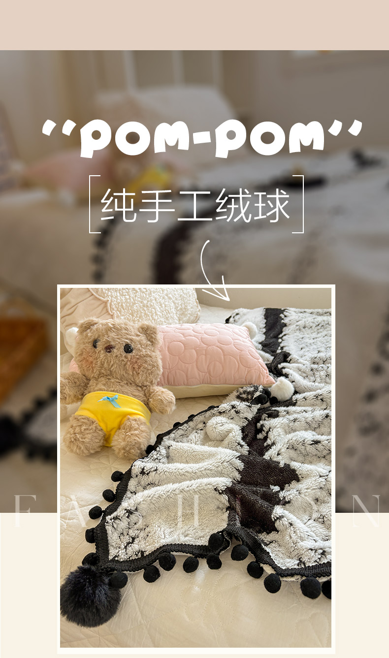 (总)潮邦创意家居 2025新款 奶芙绒流苏球毛毯,薄荷绿,焦糖咖,绵云白,浅蓝灰,深暮灰,甜莓粉