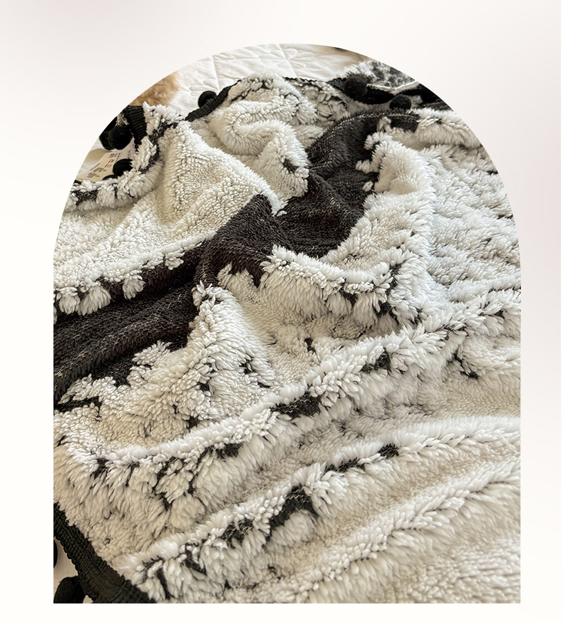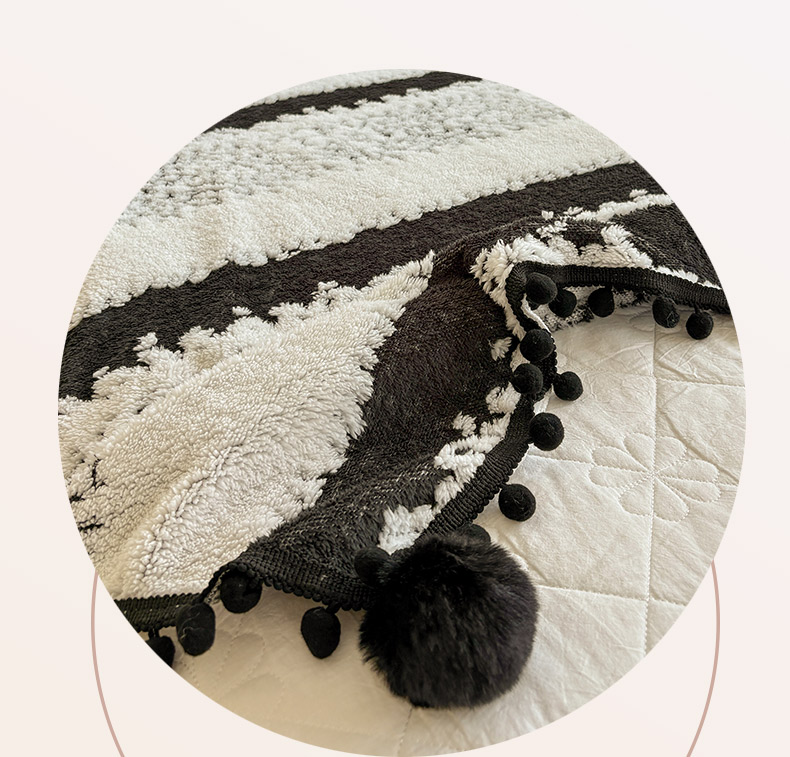 商品名称:潮邦创意家居 2025新款250g阳离子提花小球毯盖毯毯子-星绒墨趣 星绒墨趣 -耀黑