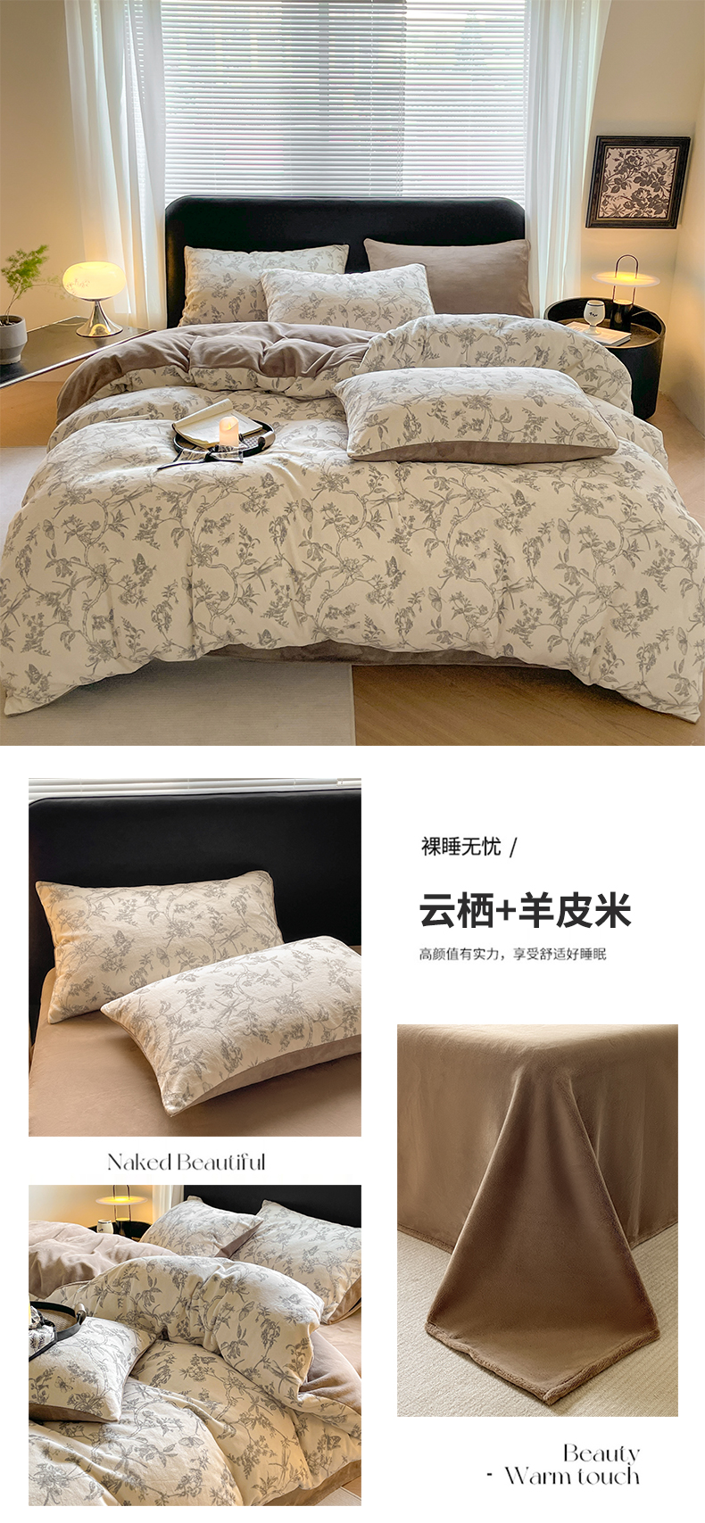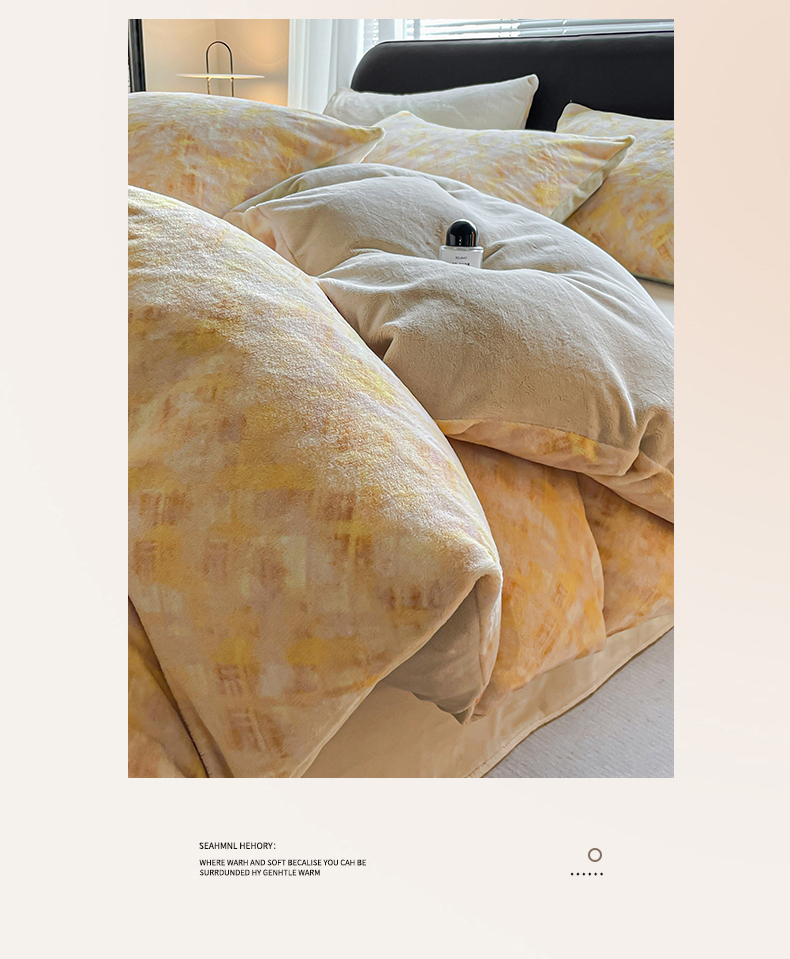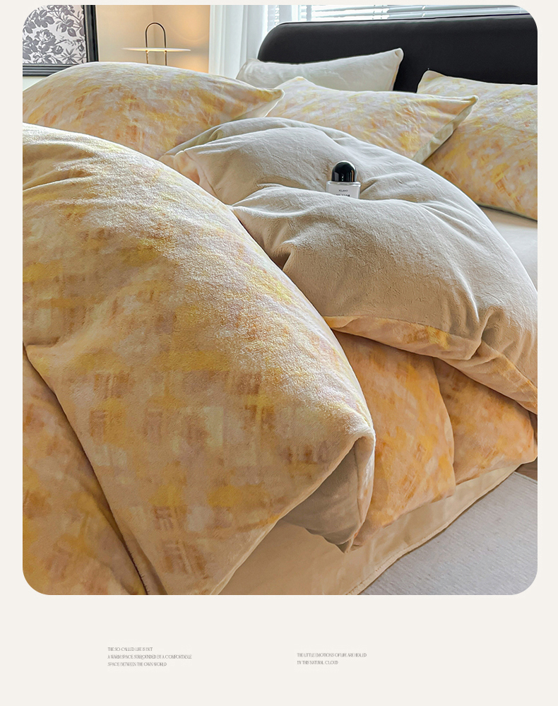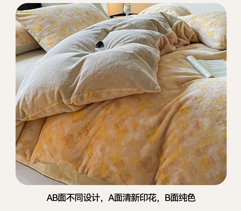 商品名称:本制 2025秋冬新款牛奶绒印花四件套 晨光-奶茶