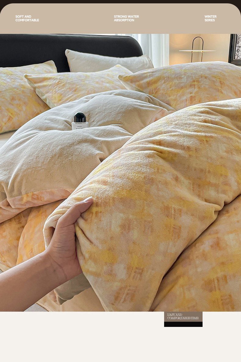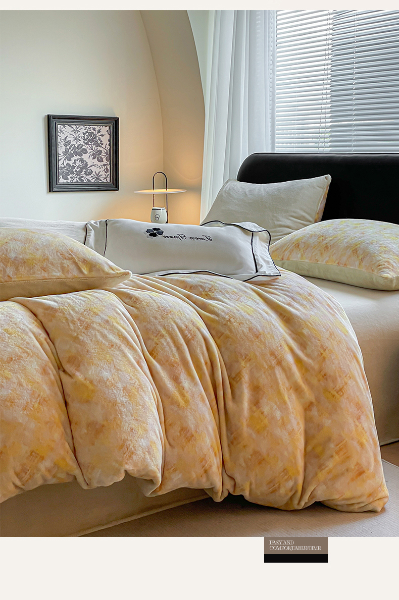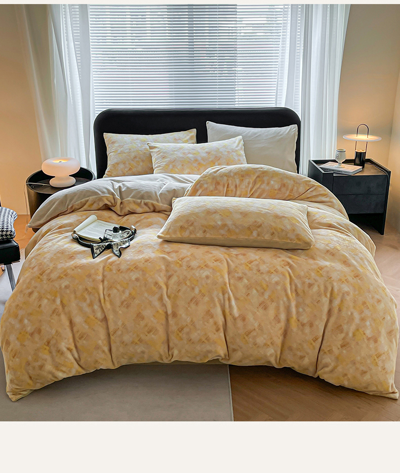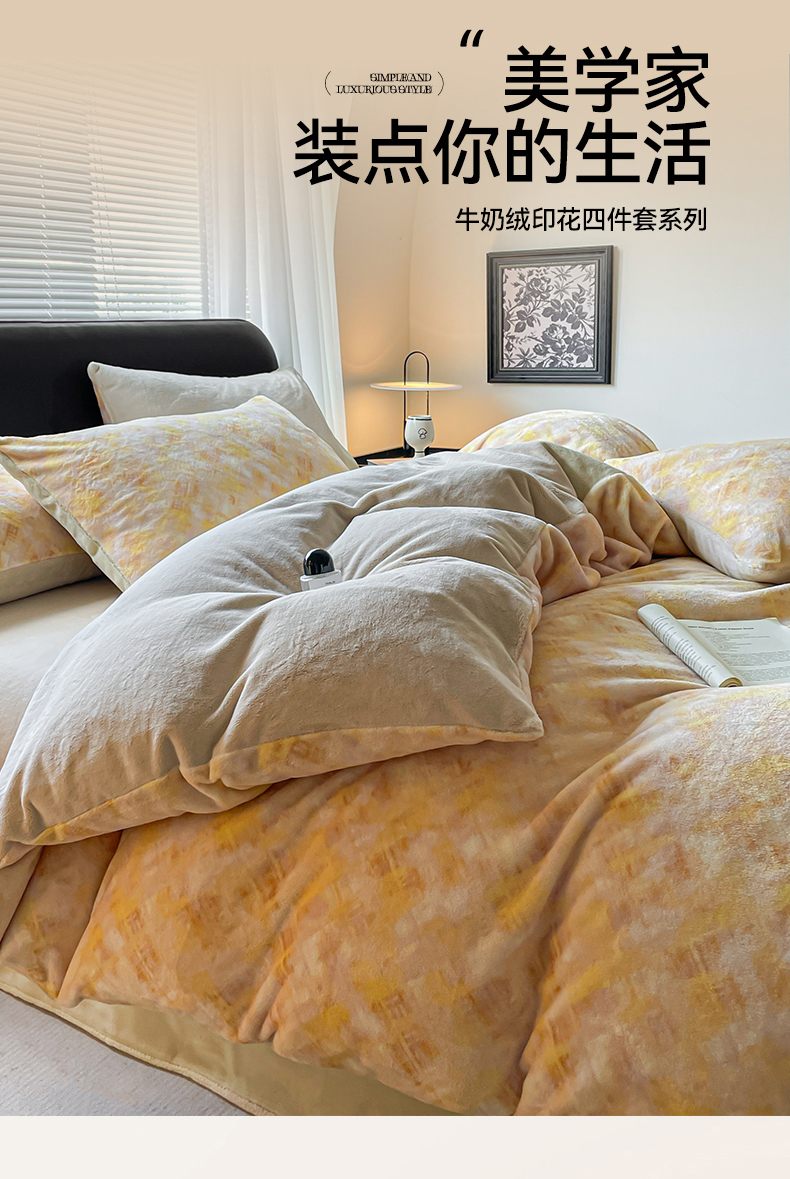 本制 2025秋冬新款牛奶绒印花四件套 晨光-奶茶