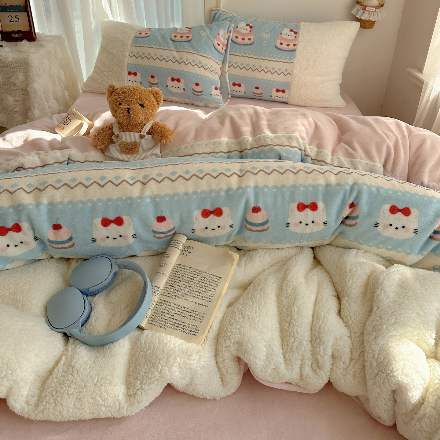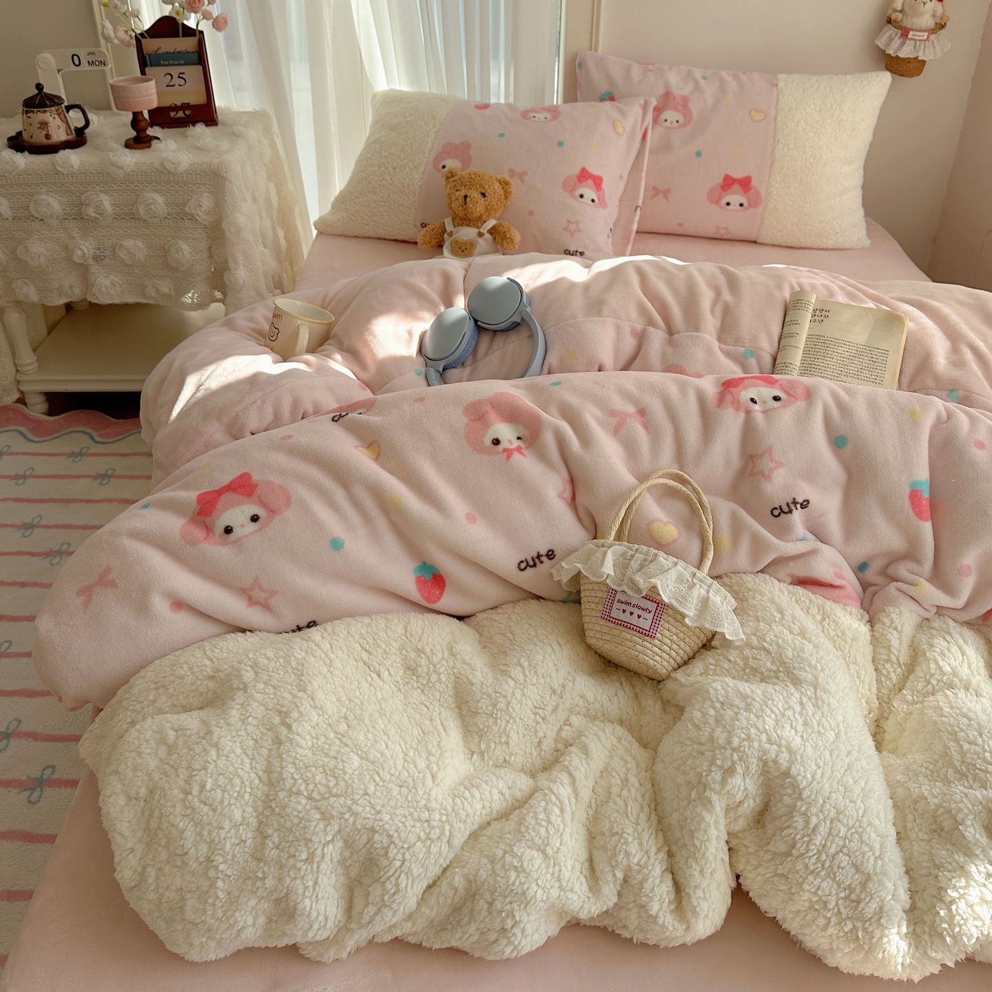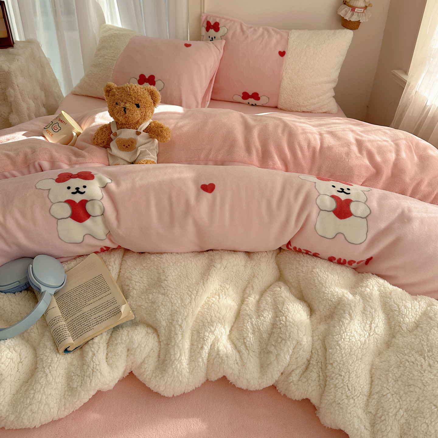 当前位置: 91家纺网 > 商品网购 > 床品套件 > 四件套 > 牛奶绒四件套 > 顾里家纺 2025新款ins韩风甜感羊羔拼接牛奶绒少女系四件套 线条动物