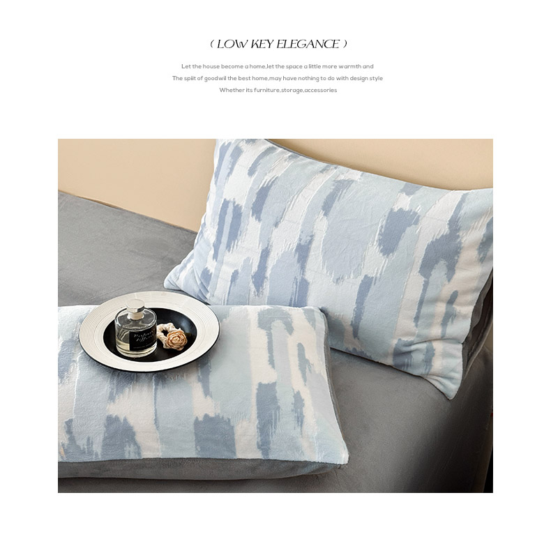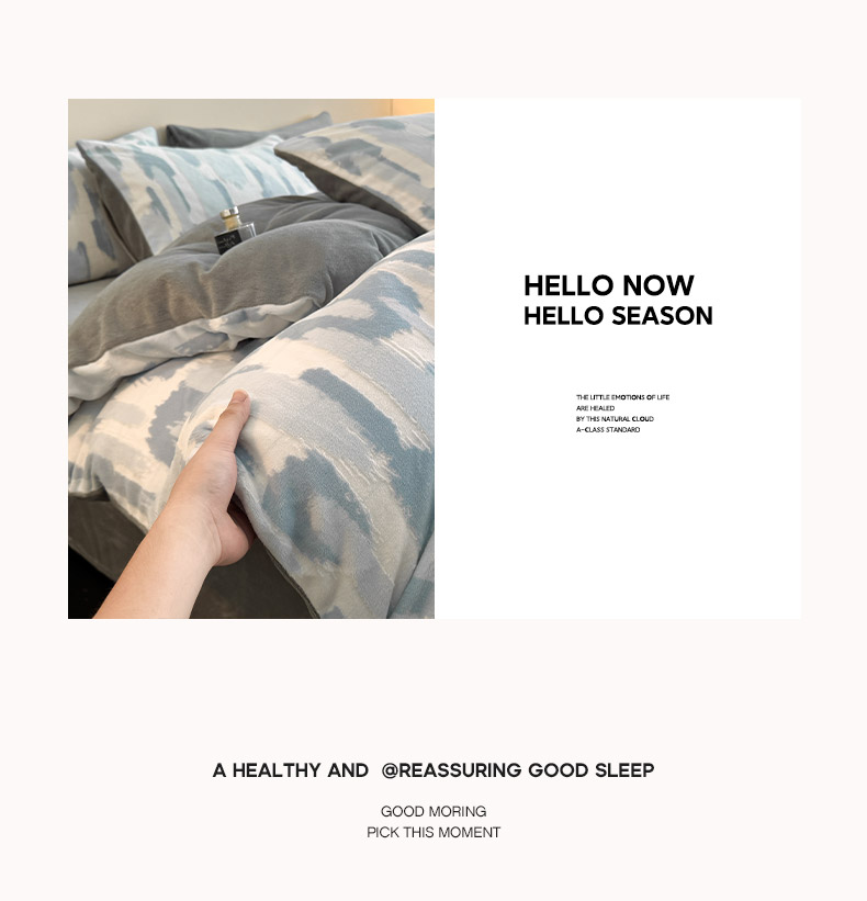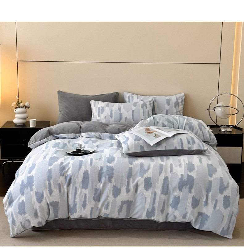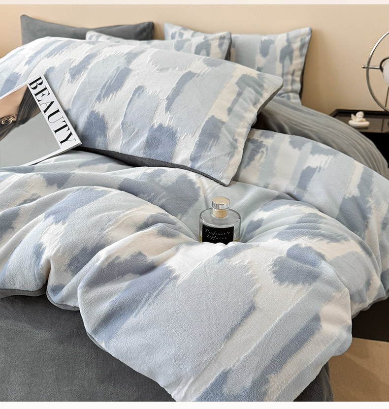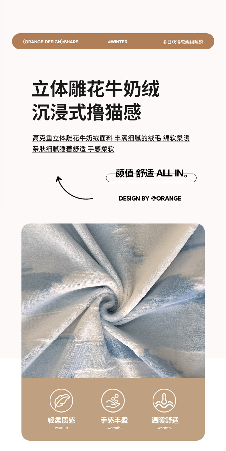 吾秀家居 2025新款立体雕花牛奶绒四件套- 柔美系列 空谷蓝