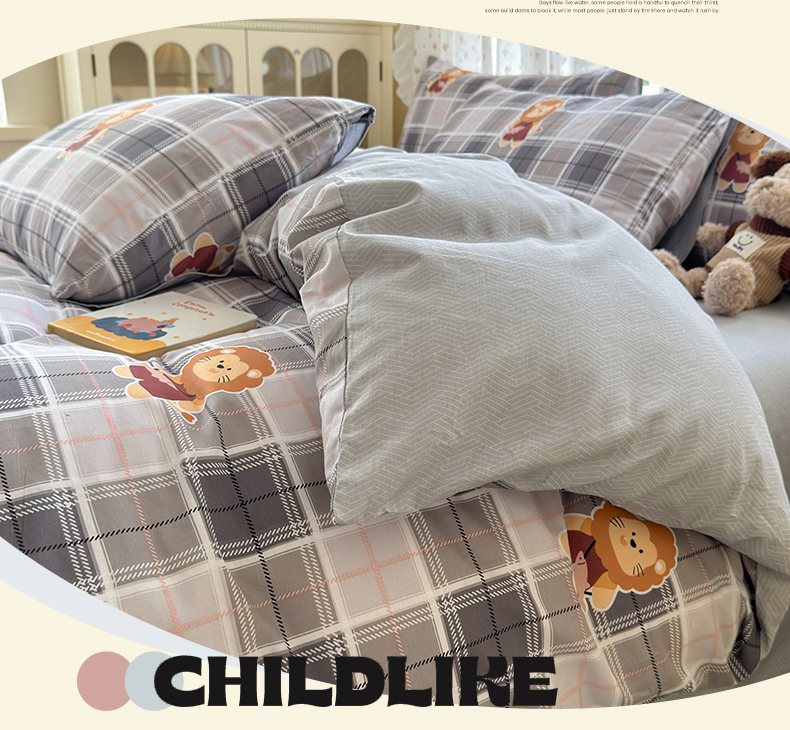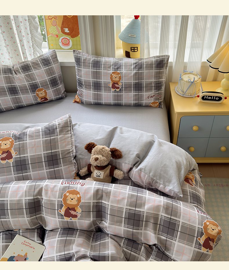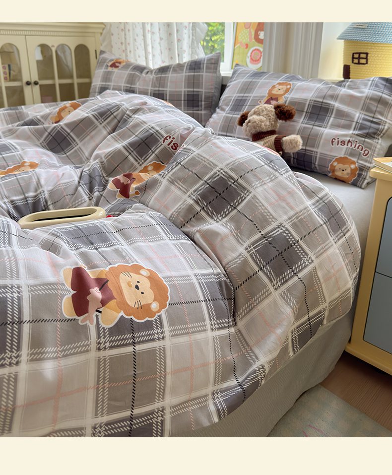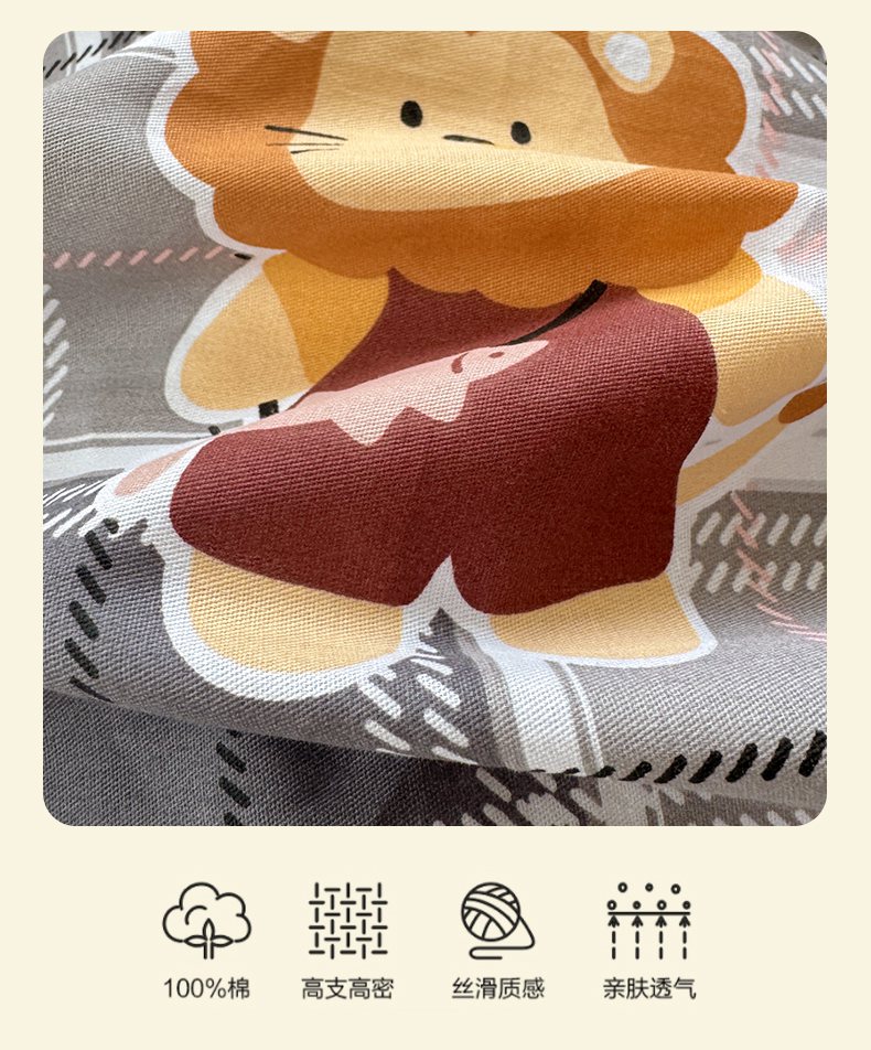 商品名称:清雅福 2026春夏新品全棉13070萌趣系列单被套 森林日记-灰格