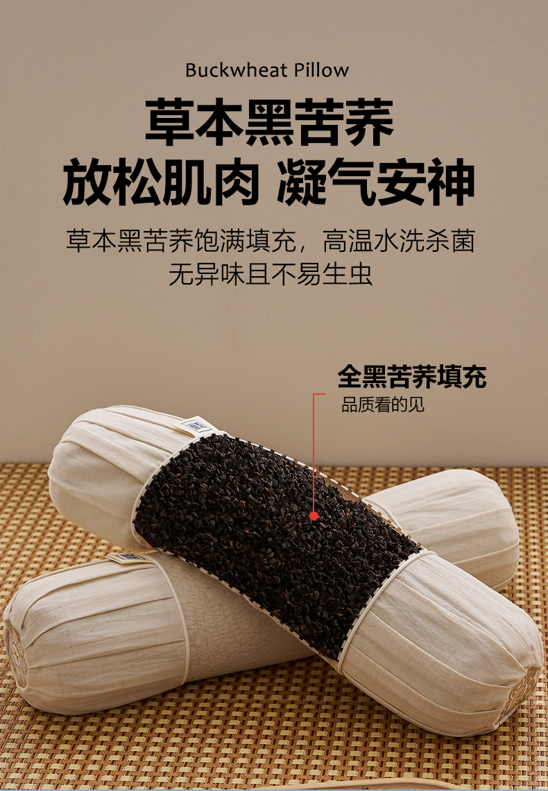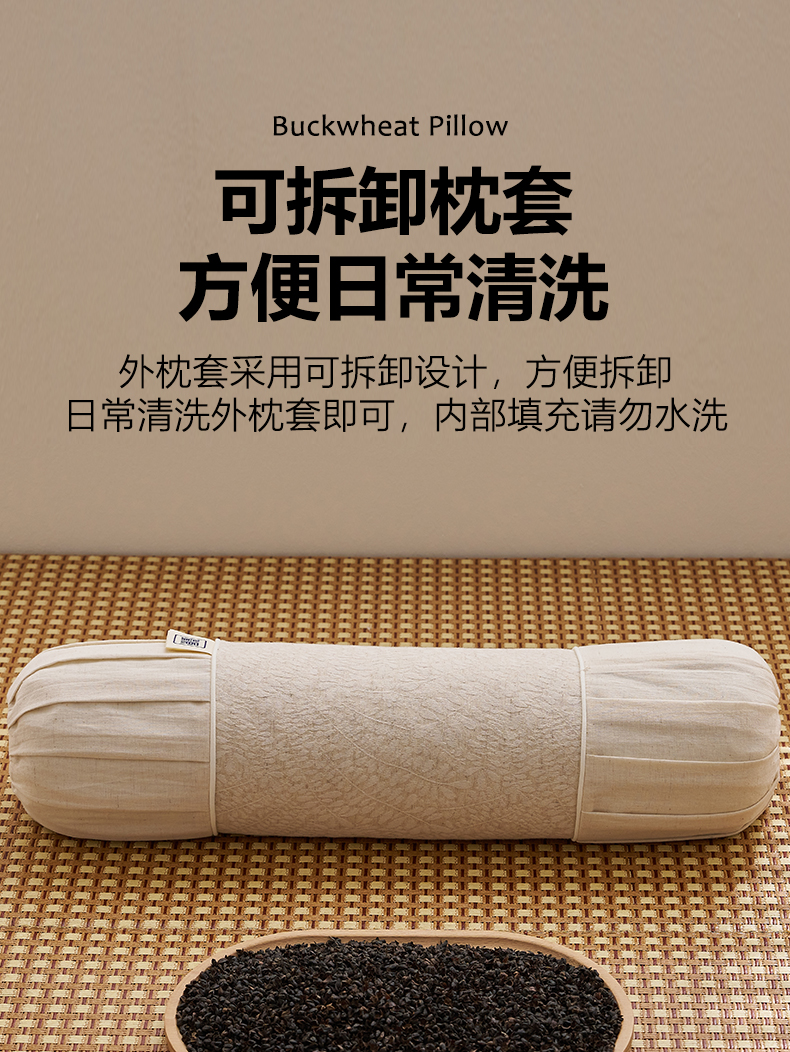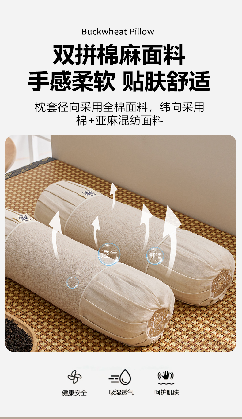 商品名称:(总)乐可 2025新款棉麻黑苦荞璞原圆柱枕荞麦枕头枕芯