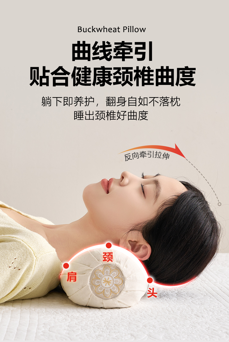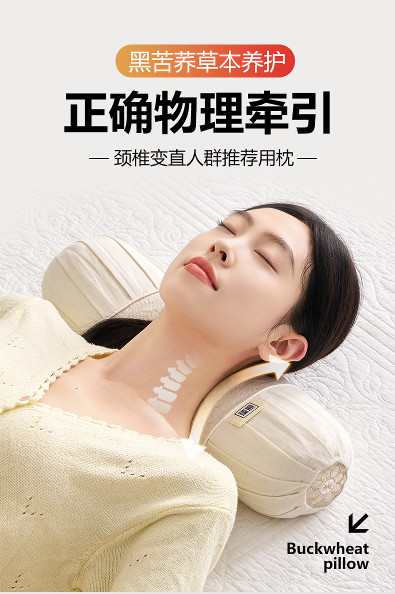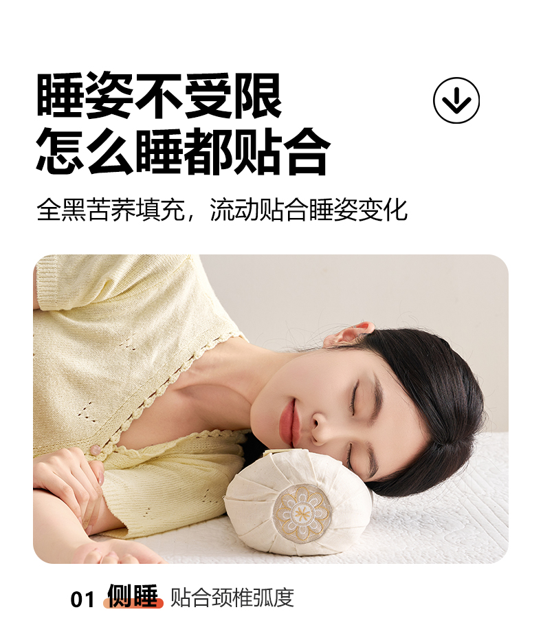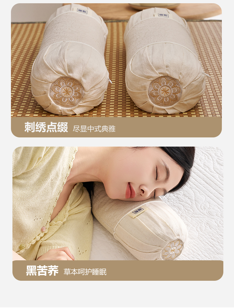 商品名称:(总)乐可 2025新款棉麻黑苦荞璞原圆柱枕荞麦枕头枕芯